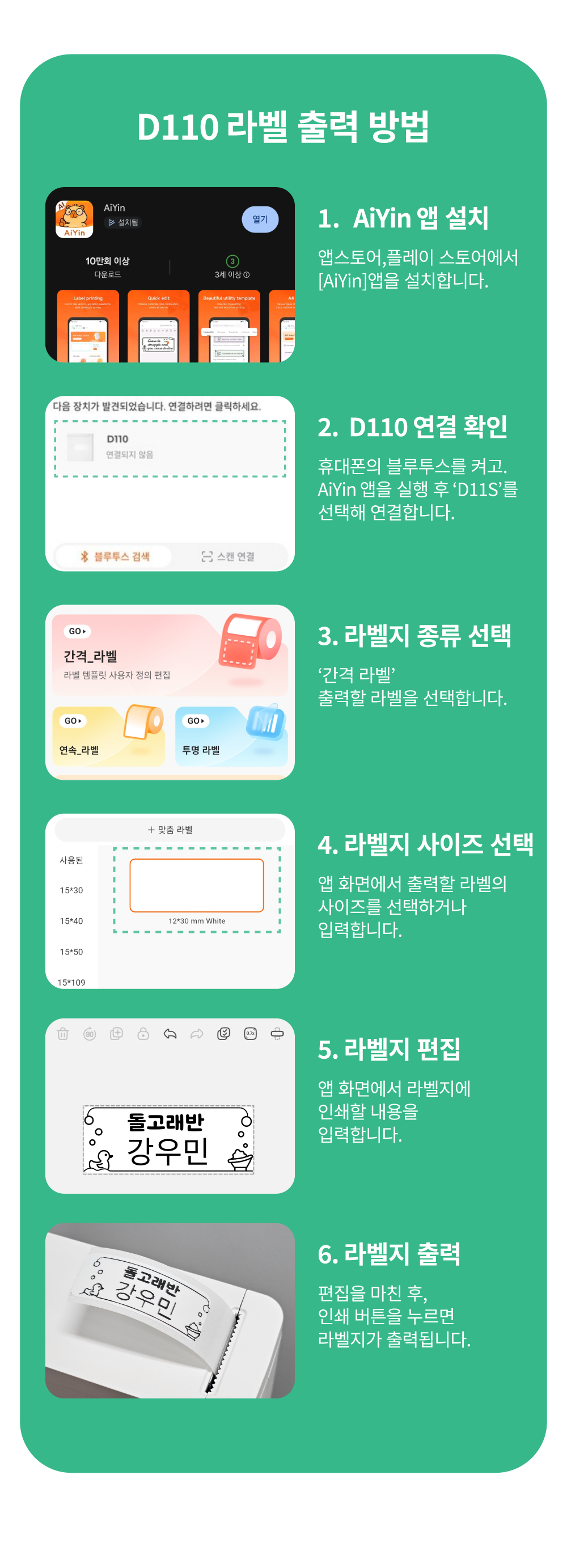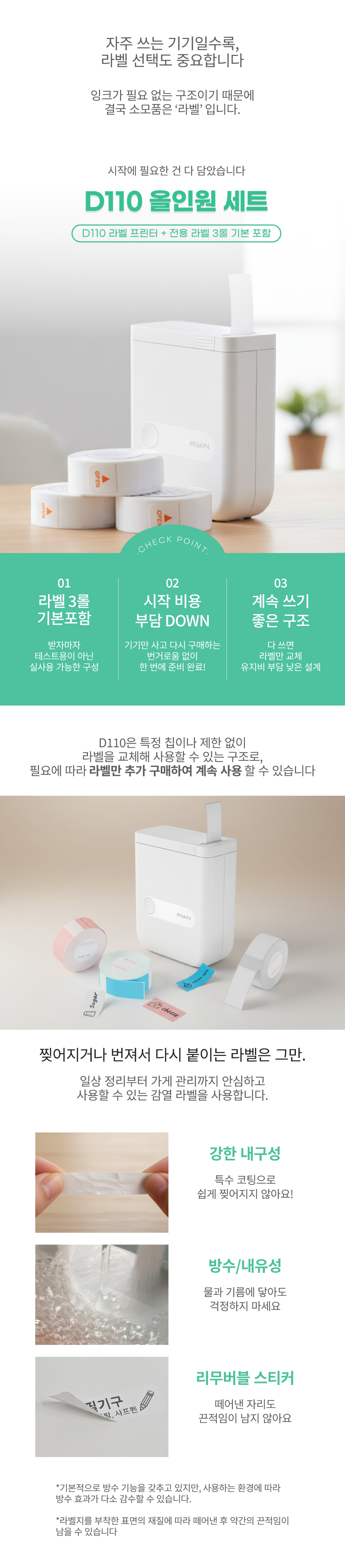 aiyin D110 소형라벨 프린터 올인원 세트