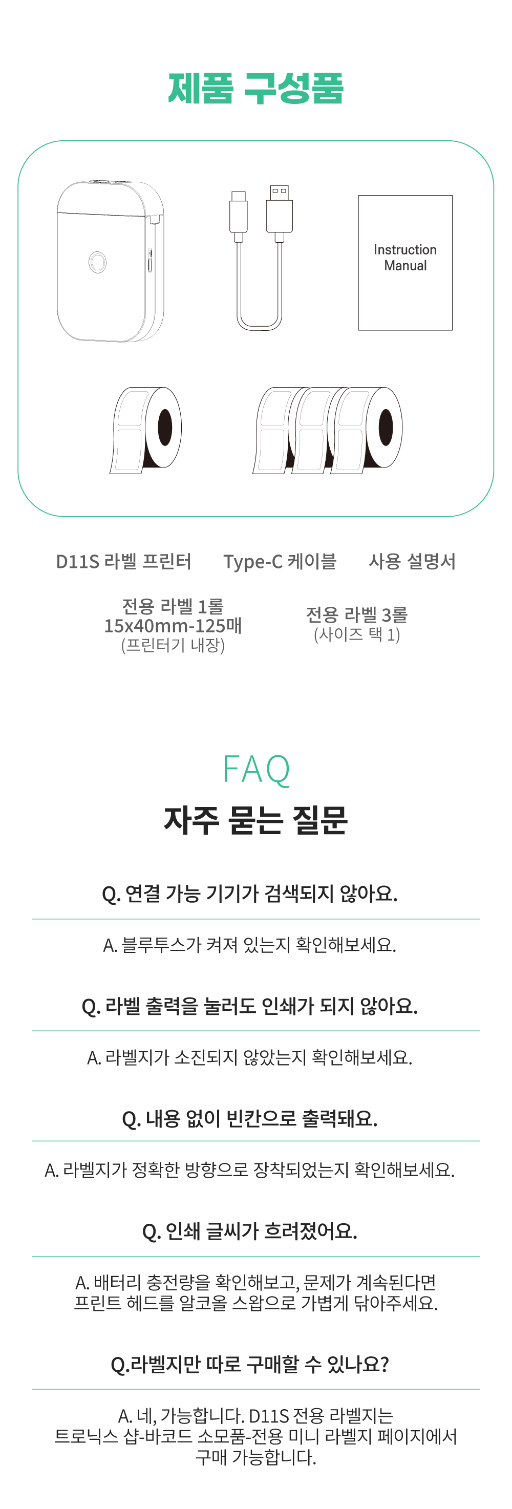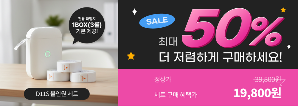 aiyin D11S 소형라벨 프린터 올인원 세트