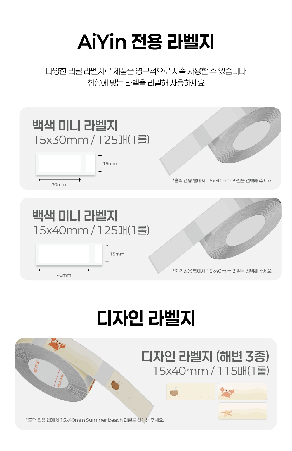 소형 라벨프린터 전용 라벨스티커 유포감열 컬러스티커
