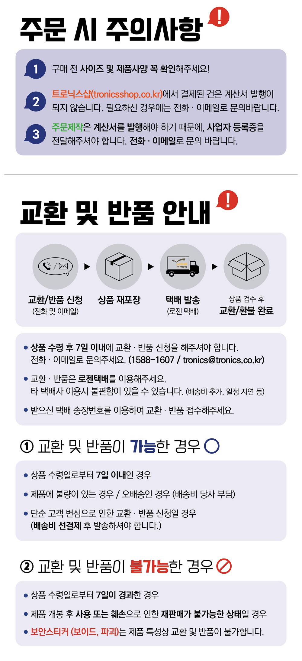 단, 보이드/파괴스티커는 제품 특성상 교환 및 반품이 불가하니 참고해주세요.
