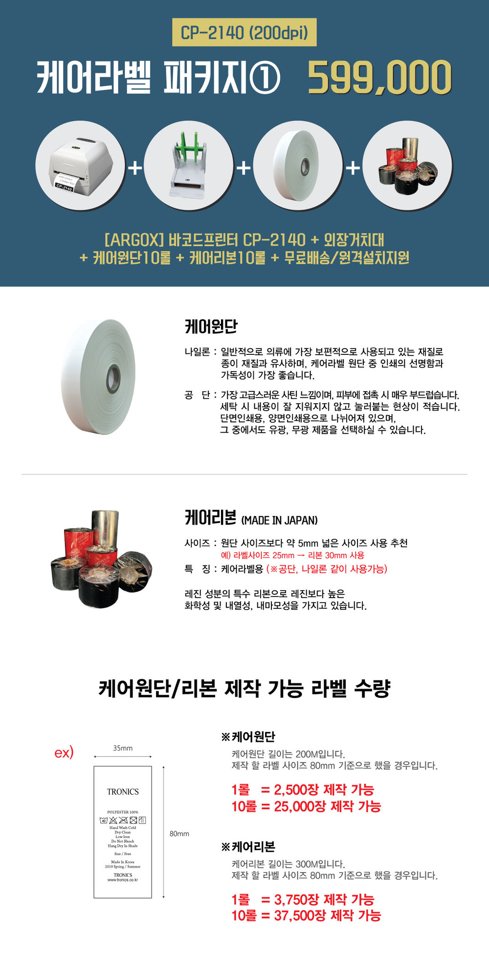 [케어라벨 패키지] CP2140(200dpi)+외장거치대+케어원단+케어리본+무료배송/무료원격설치