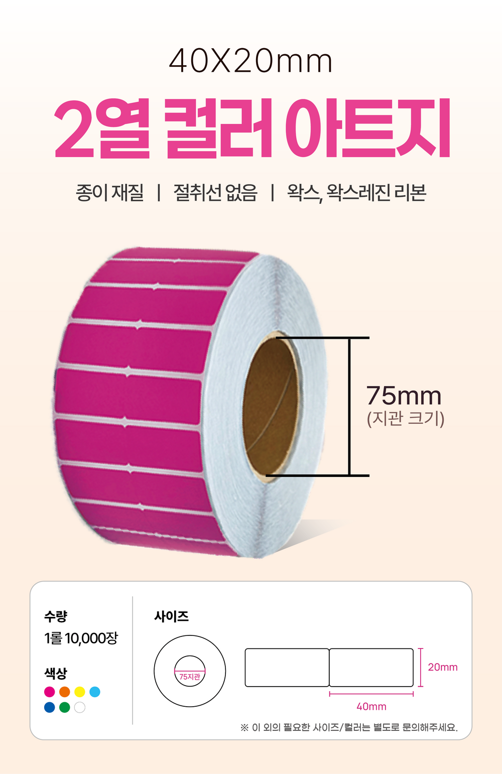 롤라벨/바코드라벨/라벨지/바코드스티커 아트지 40x20mm (7color)