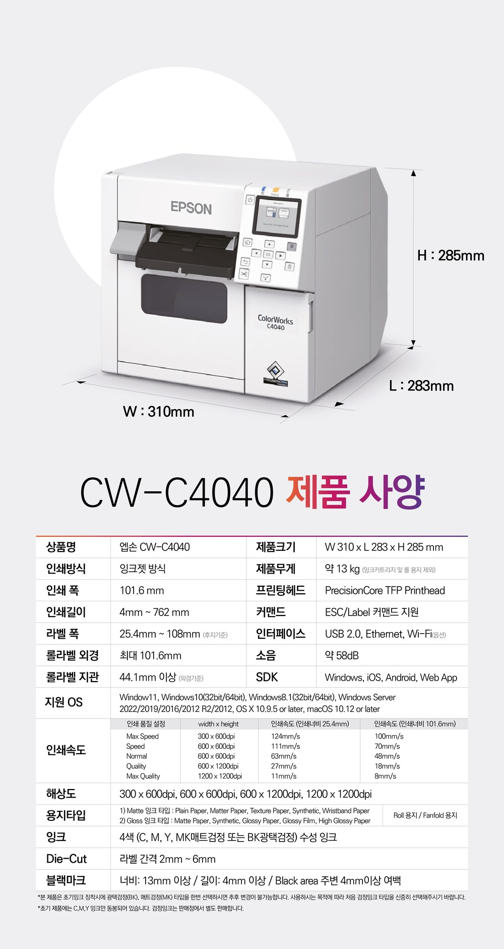 엡손 CW-C4040 (1200dpi) 잉크젯 컬러라벨 프린터 (TM-C3500후속)