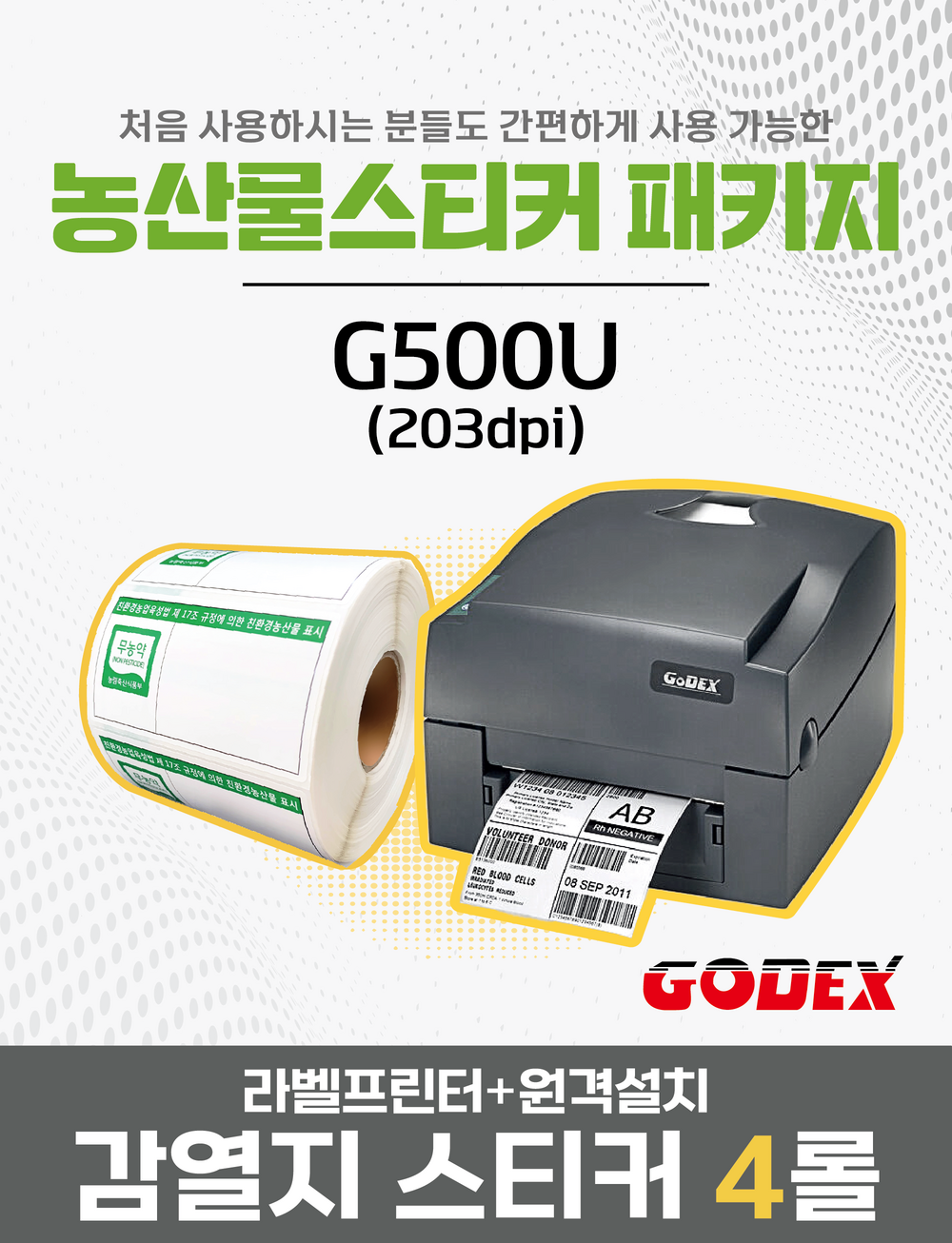 농산물스티커패키지 G500U 203dpi 감열지롤라벨+무료원격설치