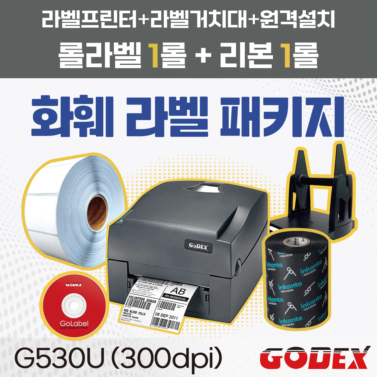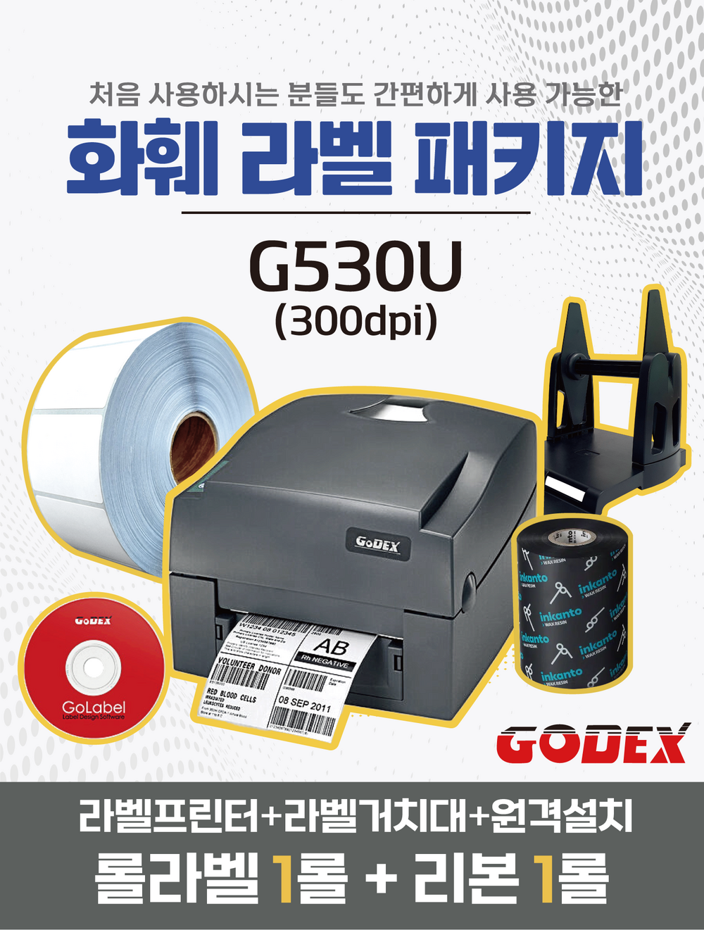 화훼 라벨 패키지 G530U 300dpi 라벨거치대+스티커롤라벨+열전사리본+무료원격설치