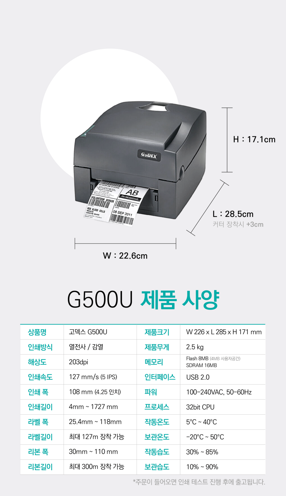GODEX 고덱스 G500U (203dpi) 라벨 바코드 프린터 무료배송/무료원격설치