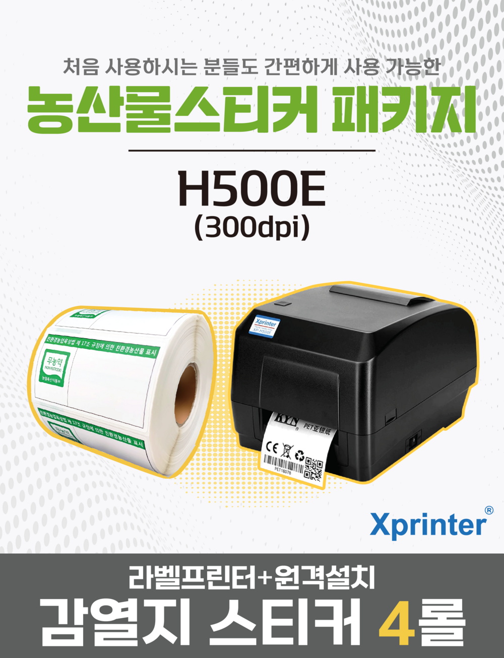 농산물스티커패키지 H500E 300dpi 라벨거치대+감열지롤라벨+무료원격설치