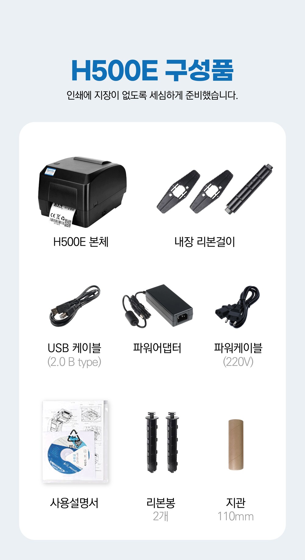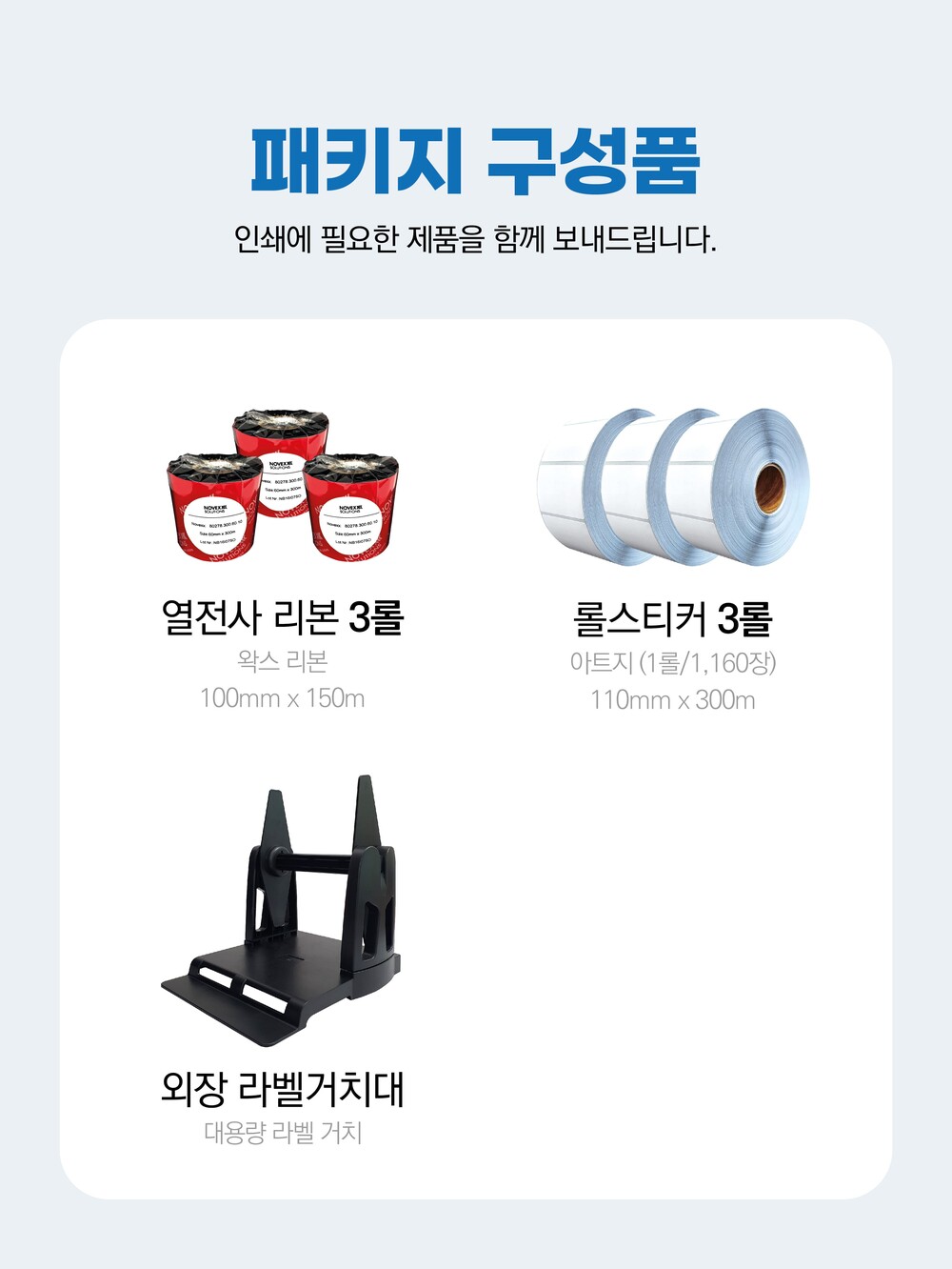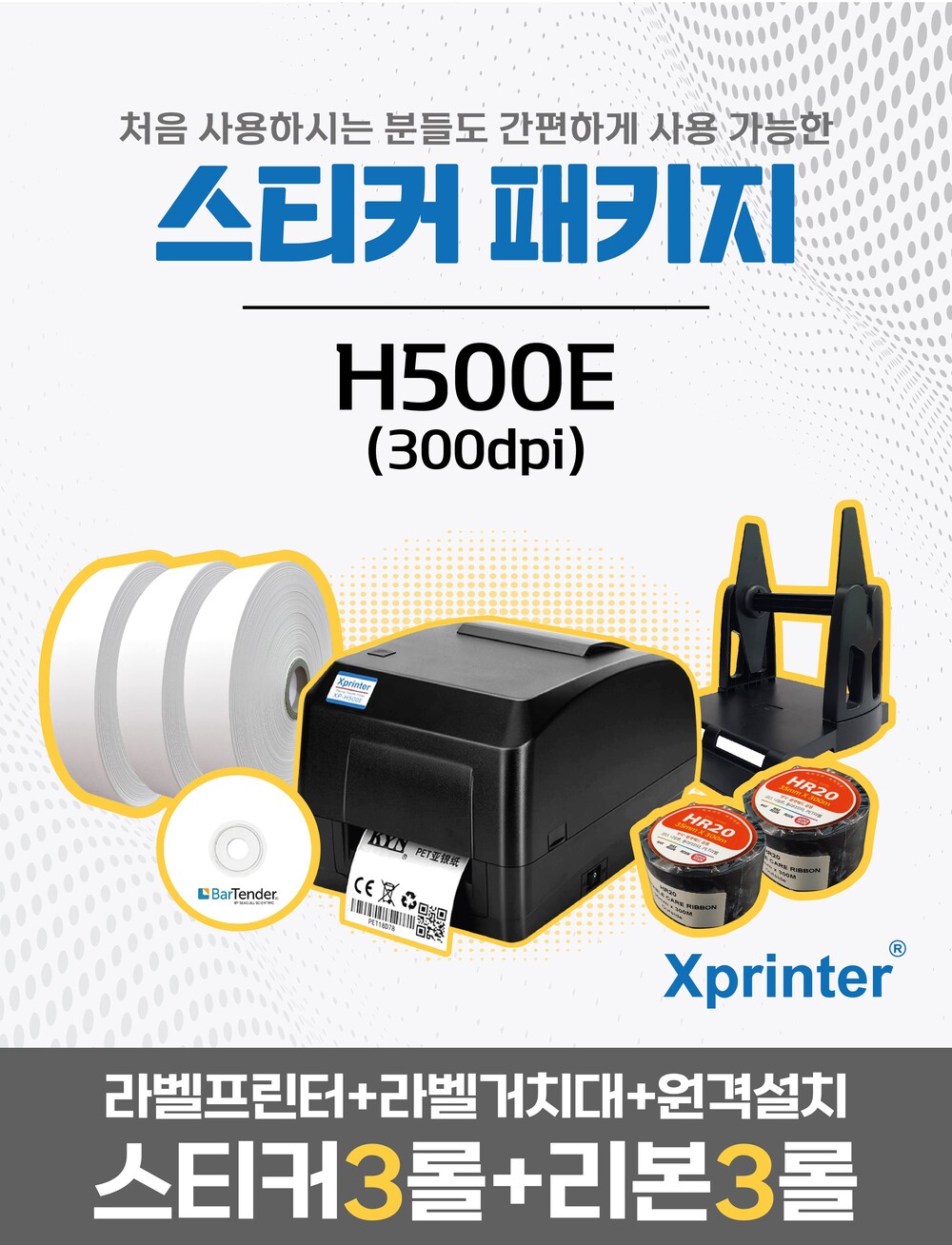 스티커패키지 H500E 300dpi 라벨거치대+스티커롤라벨+열전사리본+무료원격설치
