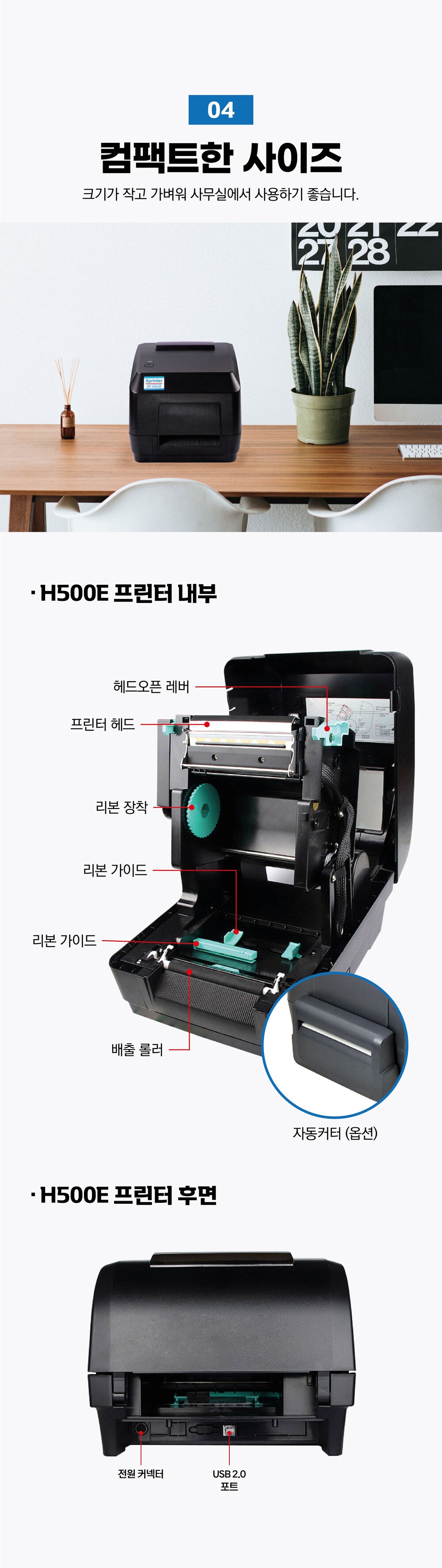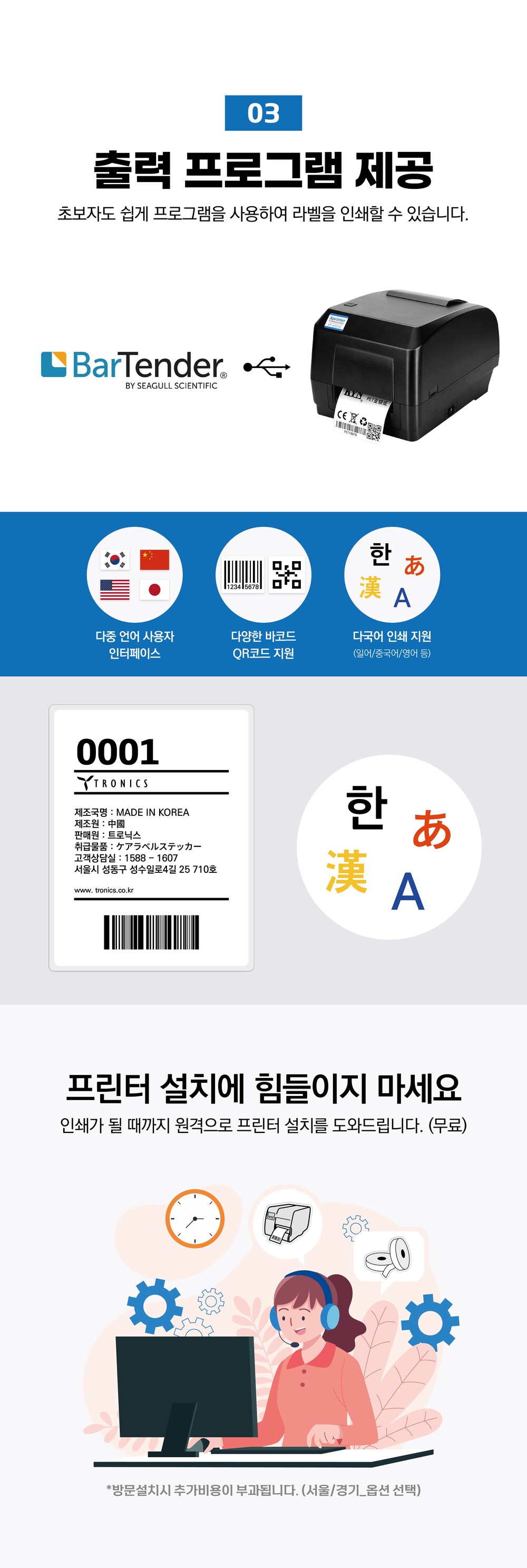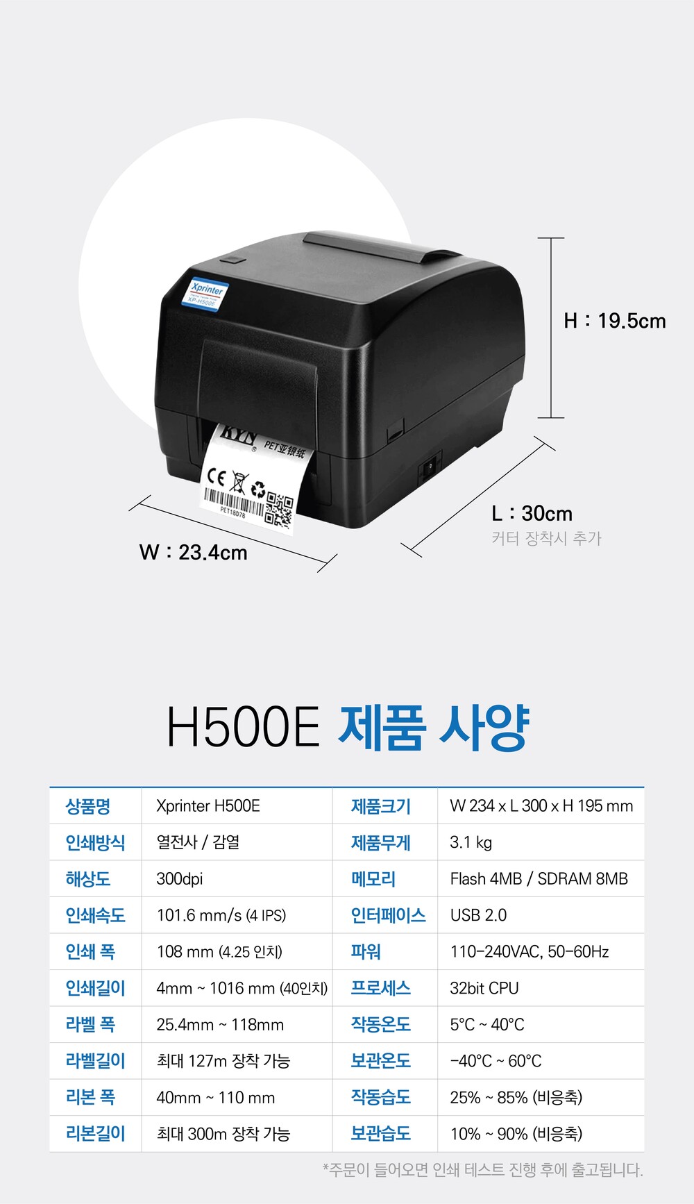 스티커패키지 H500E 300dpi 라벨거치대+스티커롤라벨+열전사리본+무료원격설치