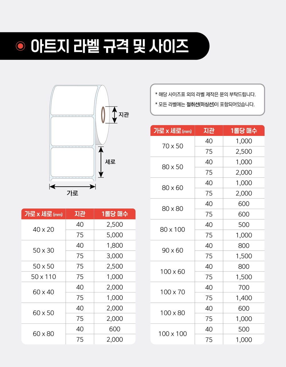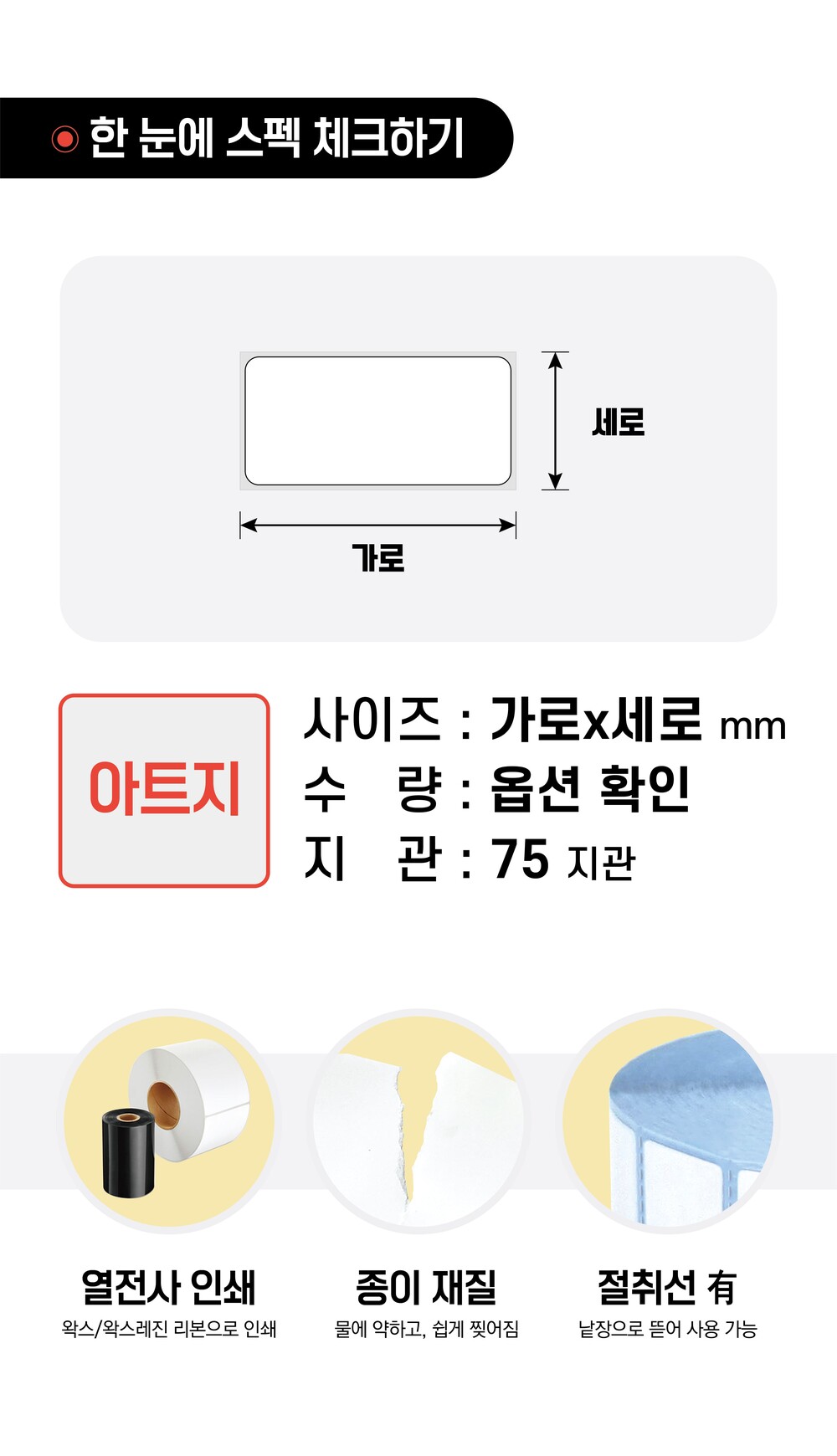 롤라벨 아트지 75지관 50x30mm / 라벨지 / 바코드스티커 / 바코드라벨