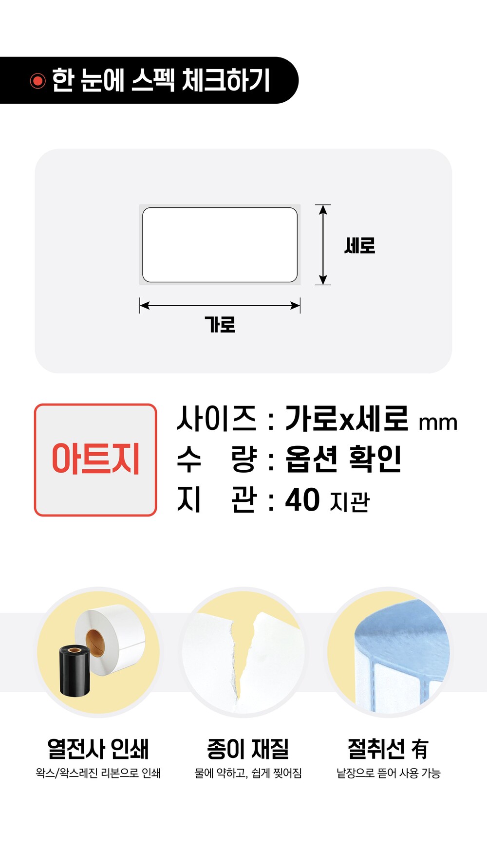 롤라벨 아트지 40지관 60x30mm / 라벨지 / 바코드스티커 / 바코드라벨