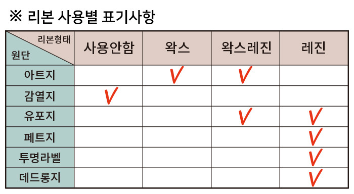 *왁스레진(WAX/RESIN) - 종이 및 필름지 (아트지, 유포지, 모조지 등) 계열에 사용