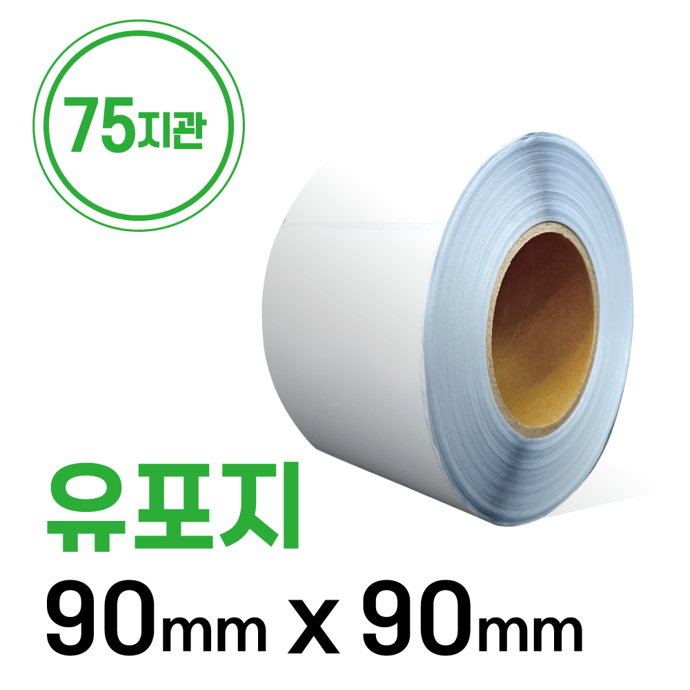 롤라벨 유포지 75지관 90x90mm 2000매/ 라벨지 / 바코드스티커 / 바코드라벨
