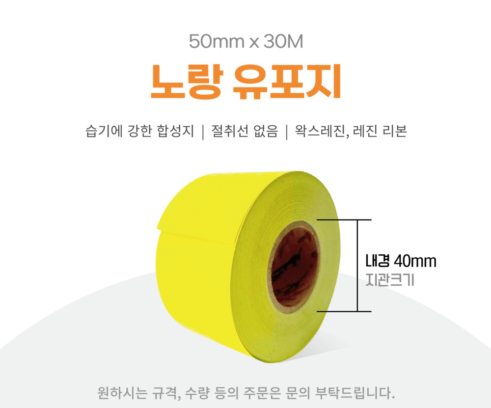 롤라벨 컬러 유포지 40지관 50mm x 30M / 라벨지 / 바코드스티커 / 바코드라벨 / 연속 라벨