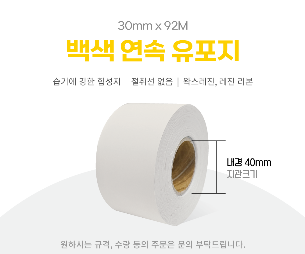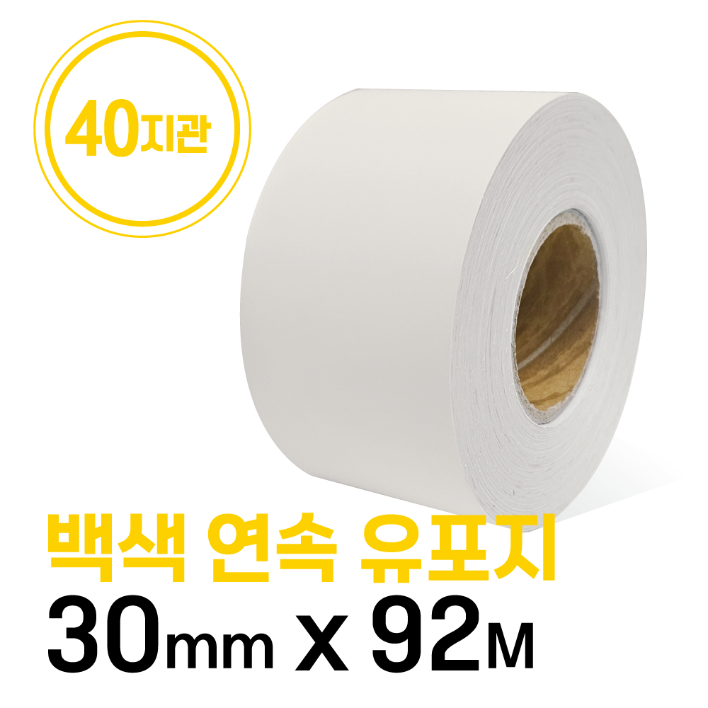 연속롤라벨 백색 유포지 40지관 30mm x 92M 안전모 혈액형 이름표