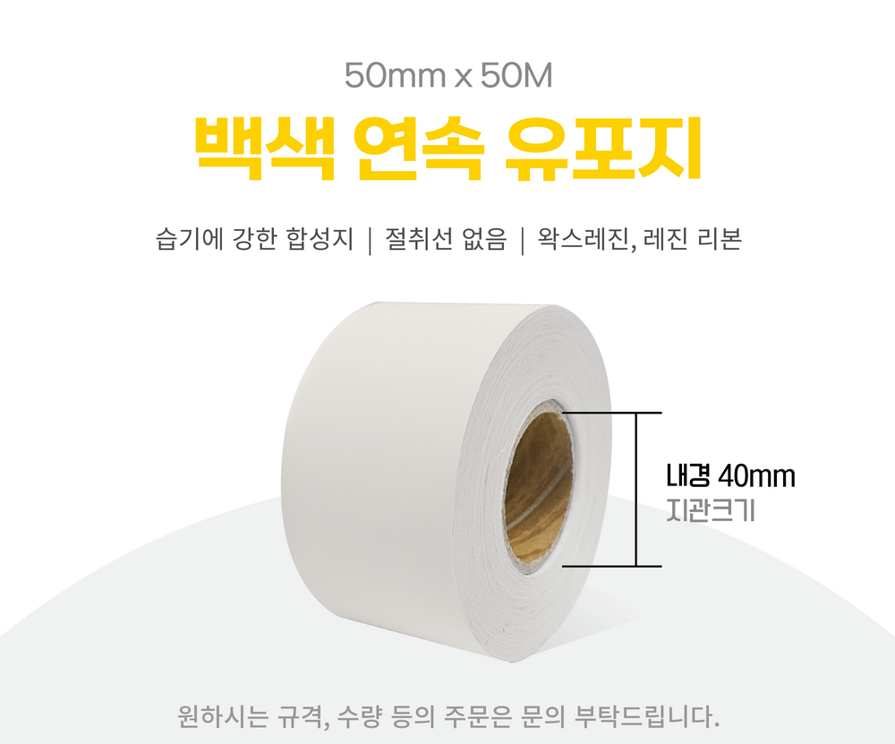 롤라벨 화이트 유포지 40지관 50mm x 50M / 라벨지 / 바코드스티커 / 바코드라벨 / 연속 라벨