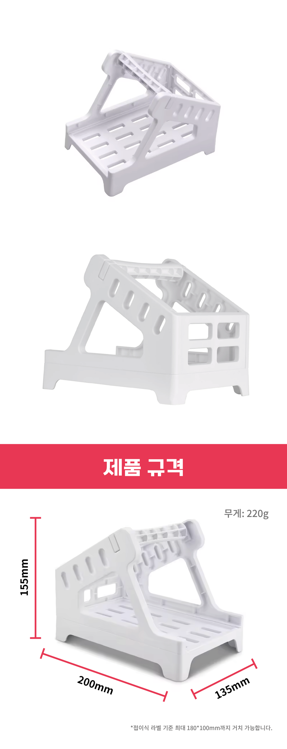 접이식 라벨지 기준 최대 180x100mm까지 거치 가능합니다.