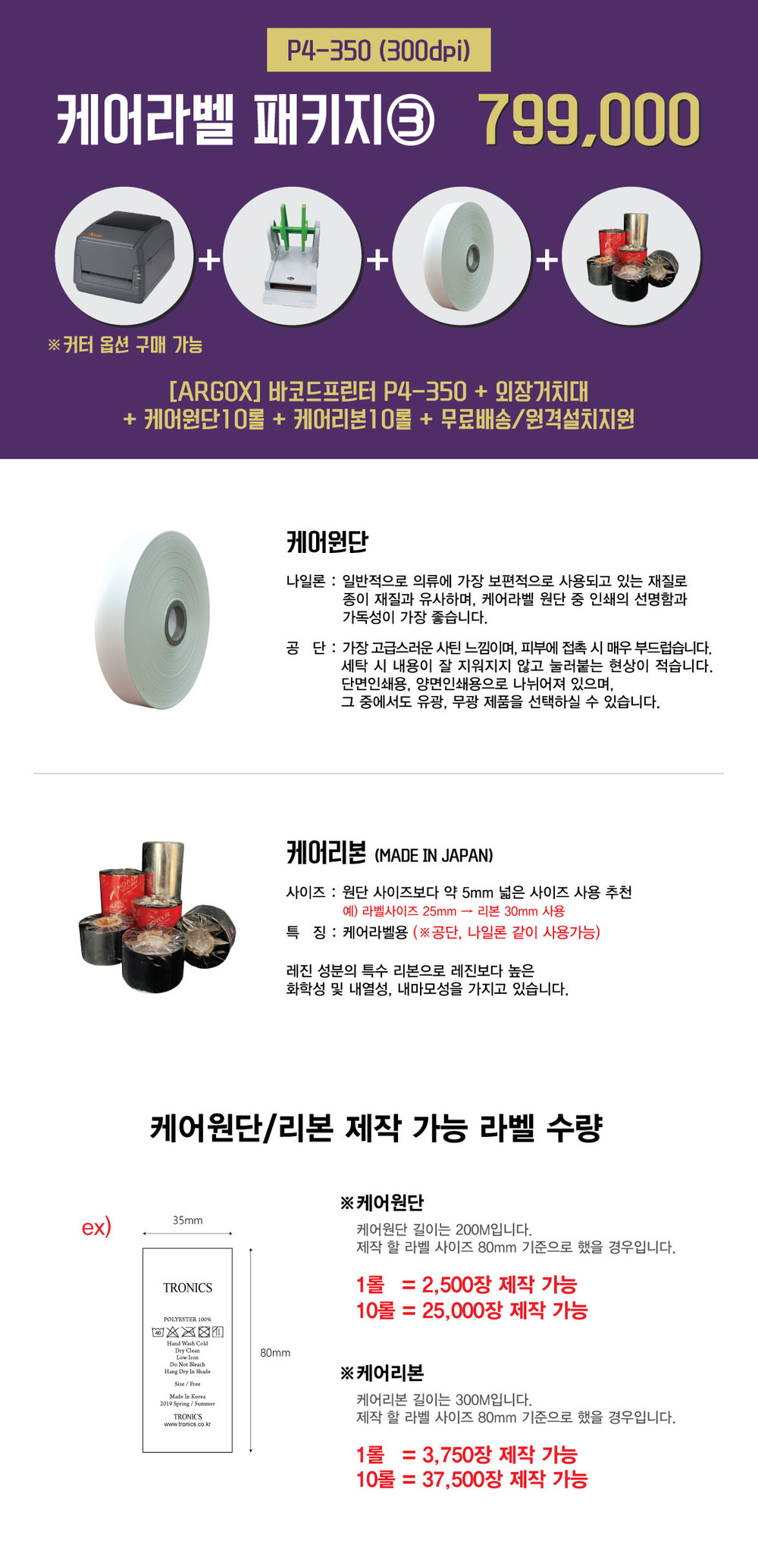 [케어라벨 패키지] P4-350(300dpi)+외장거치대+케어원단+케어리본+무료배송/무료원격설치