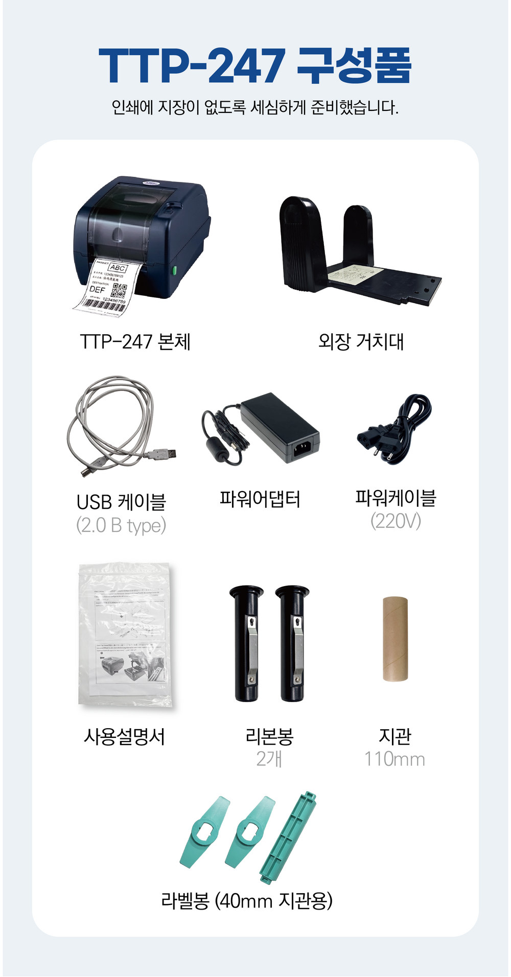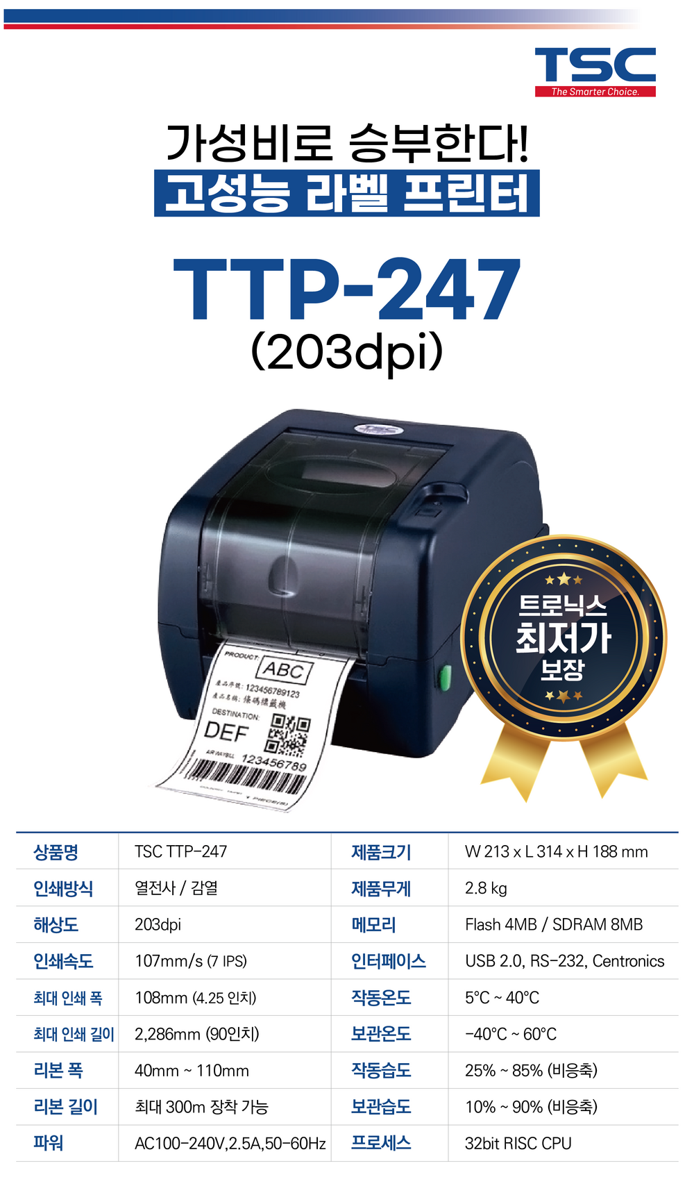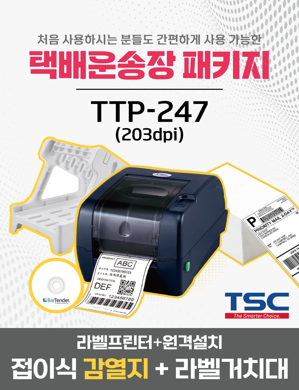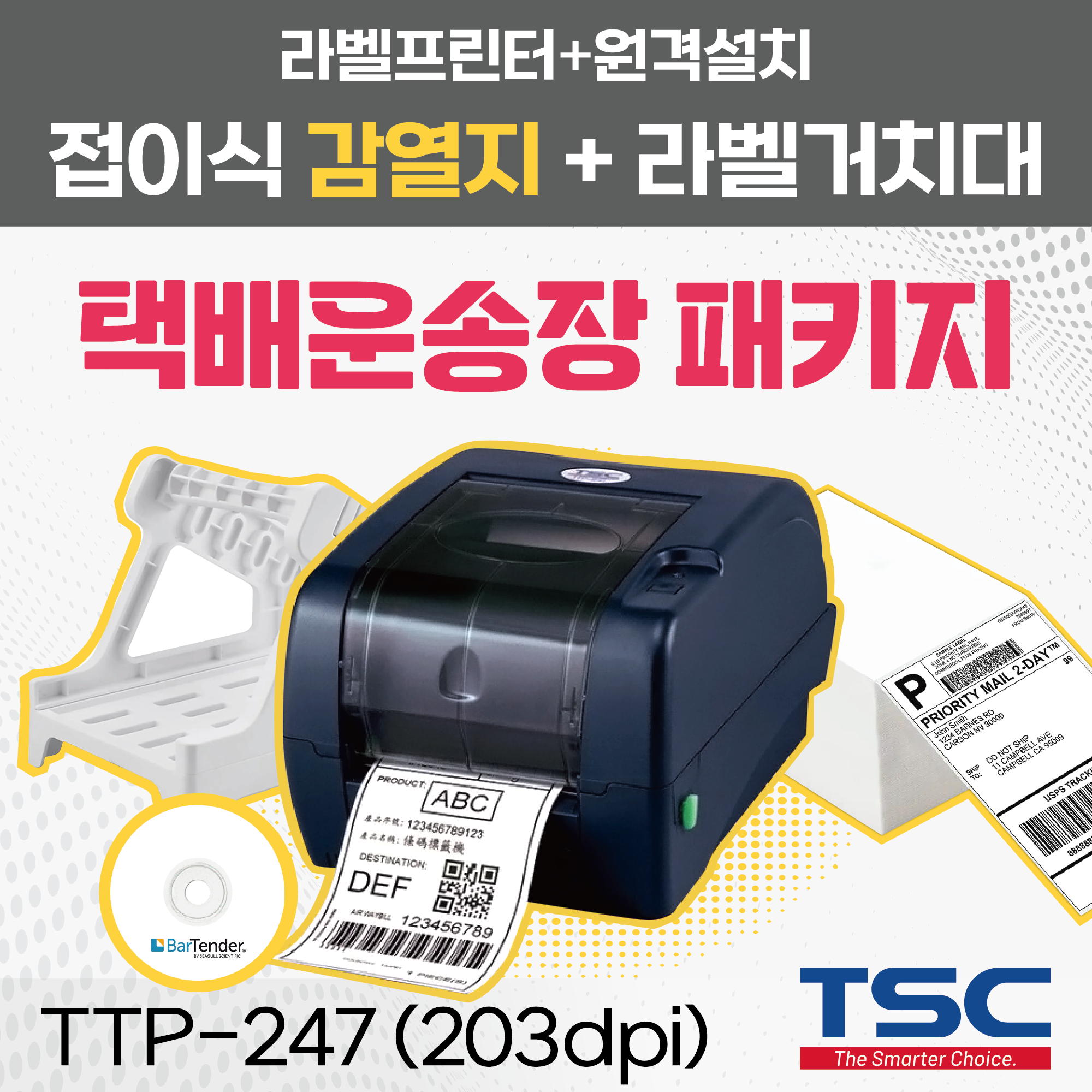 [TSC]택배운송장 패키지 TTP247 203dpi 라벨거치대+접이식감열지+라벨거치대+무료원격설치