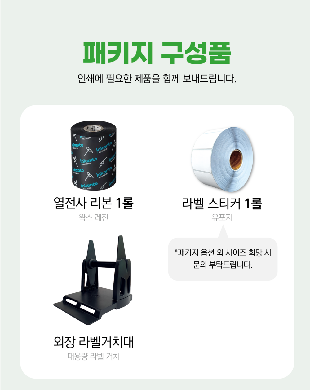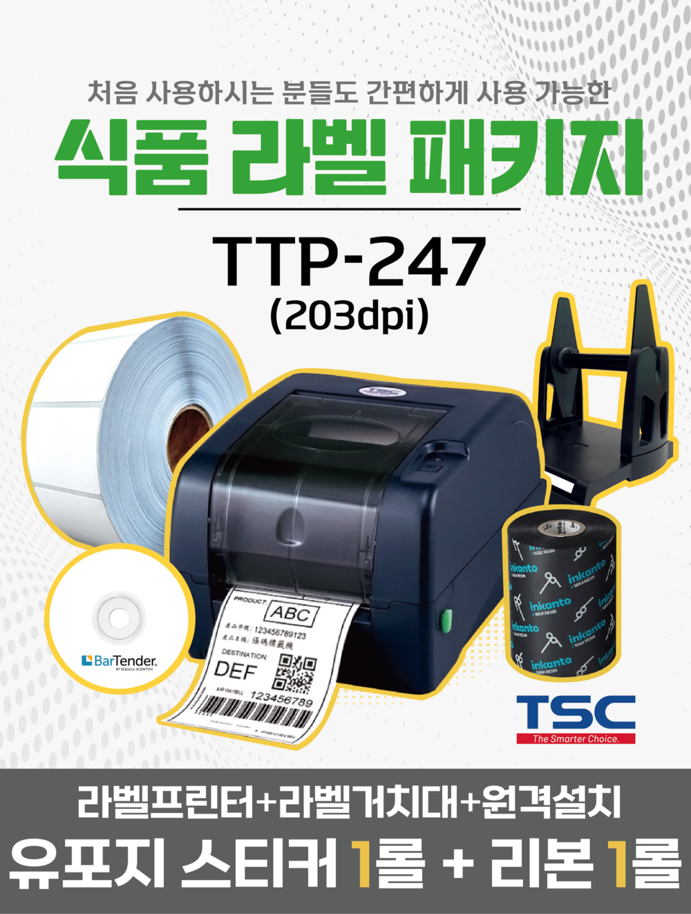 식품 라벨 패키지 TTP247 203dpi 라벨거치대+스티커롤라벨+열전사리본+무료원격설치