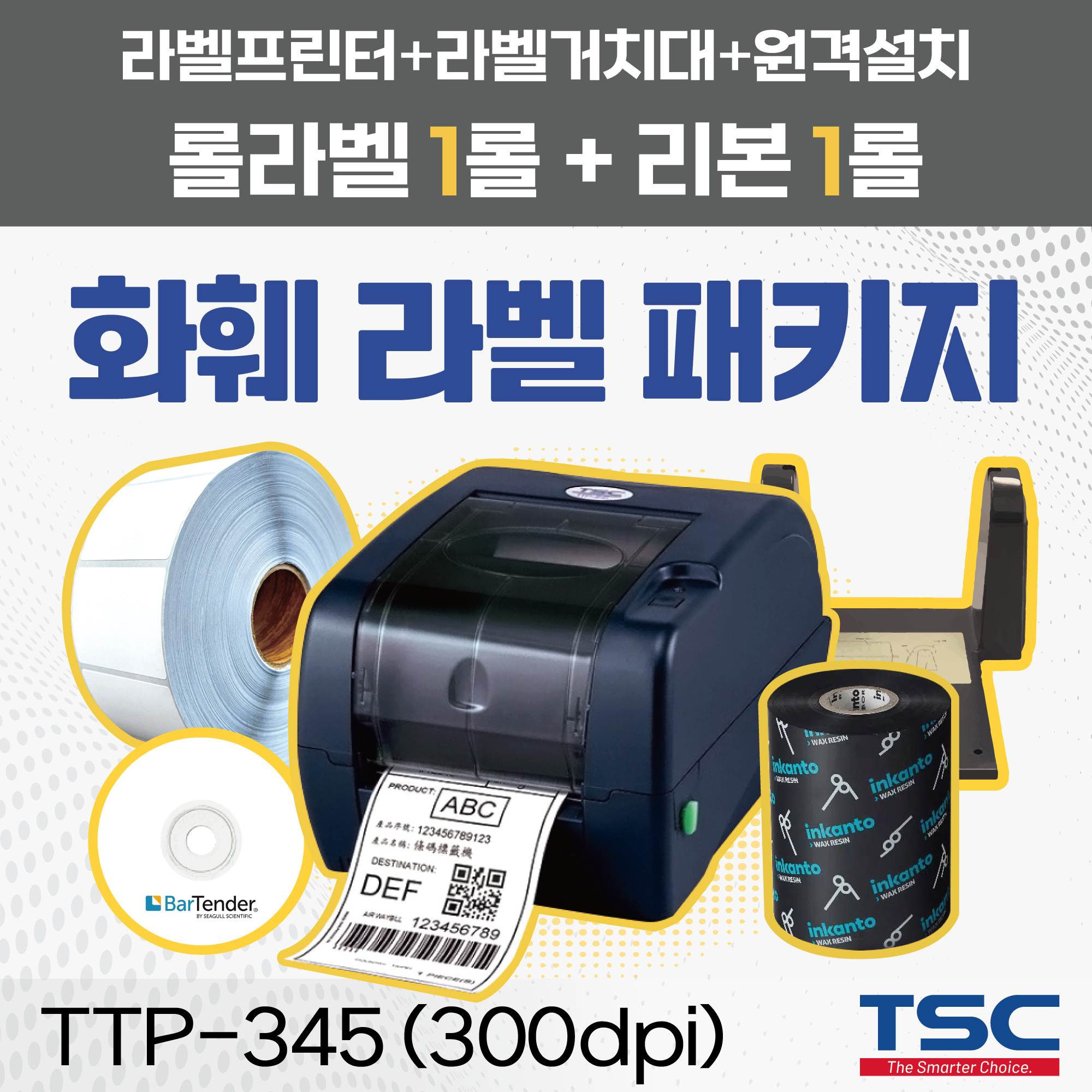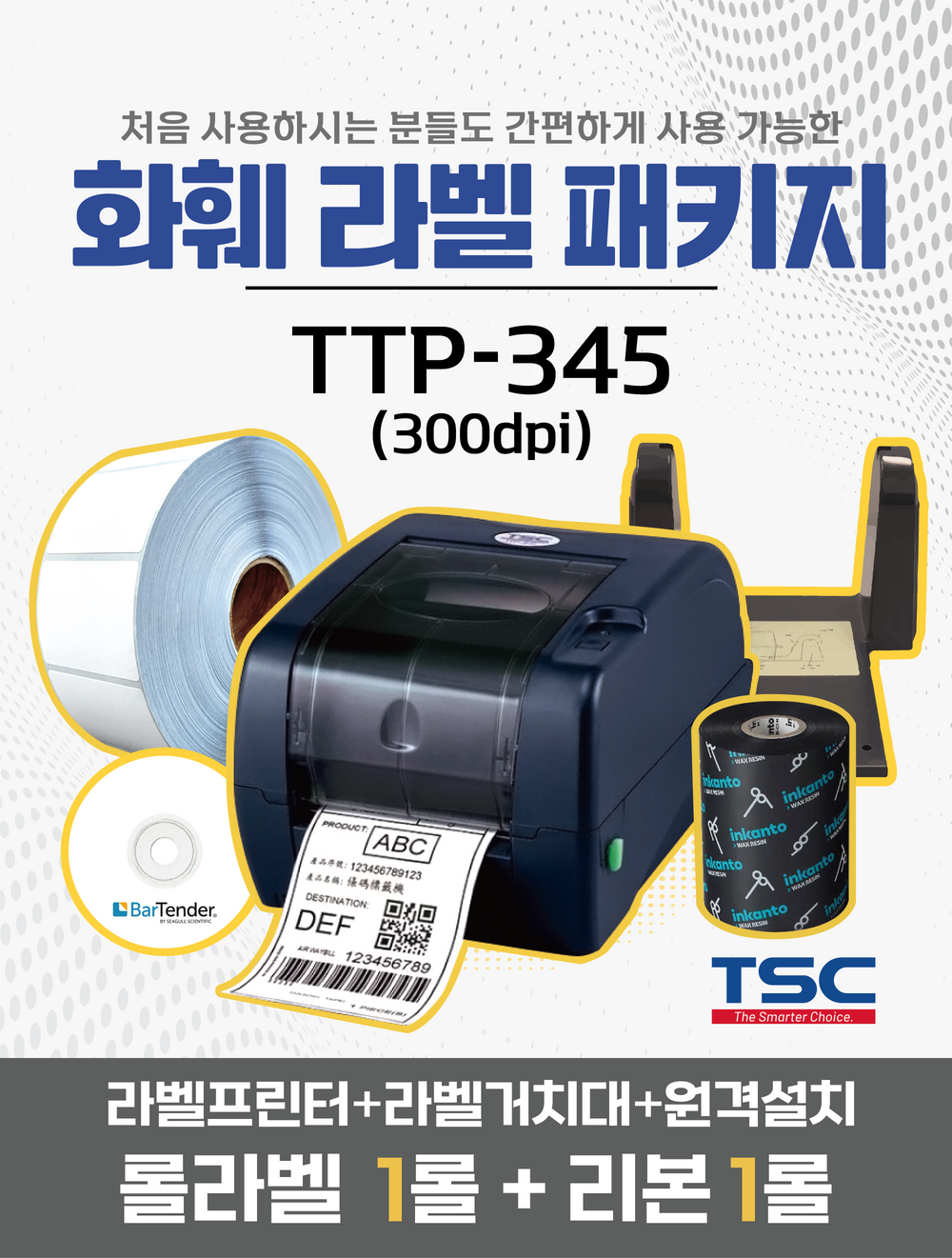 화훼 라벨 패키지 TTP345 300dpi 라벨거치대+스티커롤라벨+열전사리본+무료원격설치