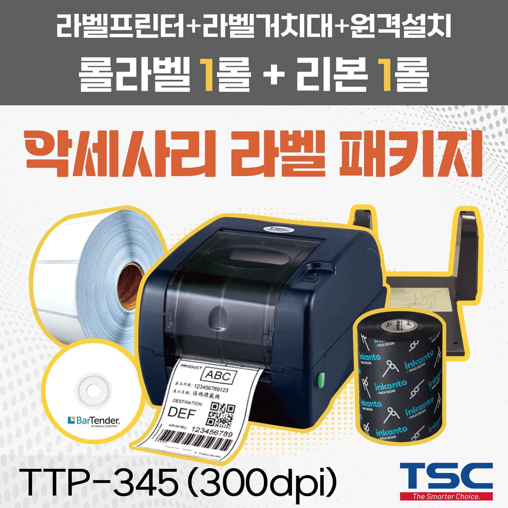 악세사리 라벨 패키지 TTP345 300dpi 라벨거치대+스티커롤라벨+열전사리본+무료원격설치