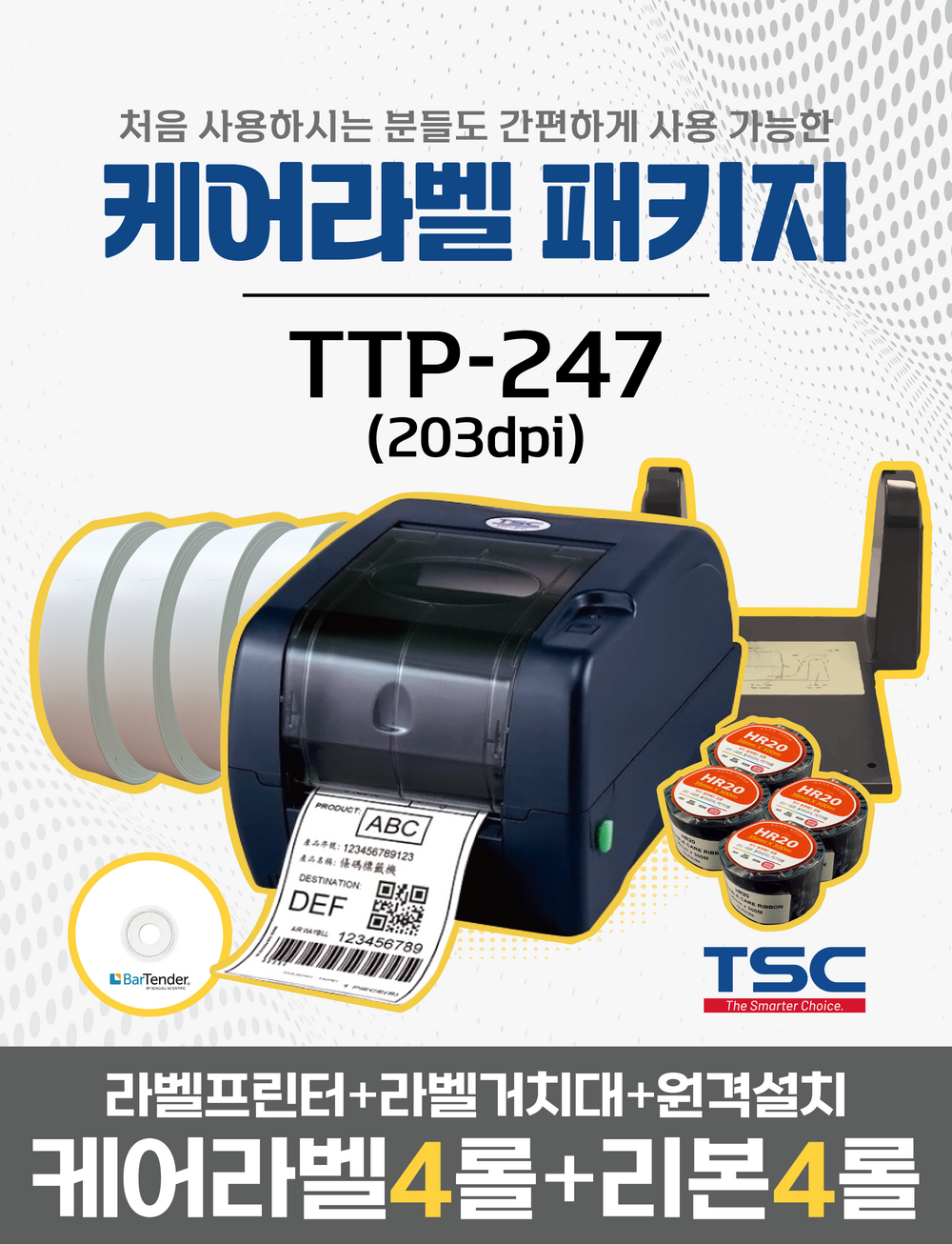 케어라벨패키지 TTP-247 203dpi 라벨거치대+케어원단+케어리본+무료원격설치