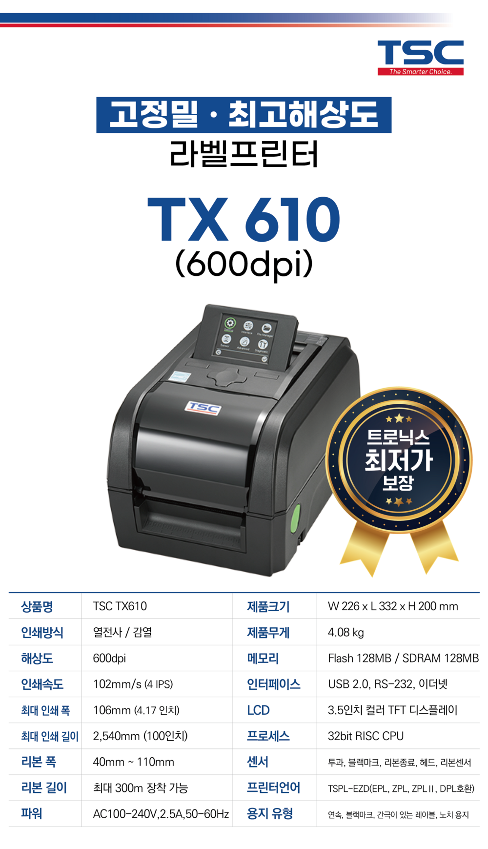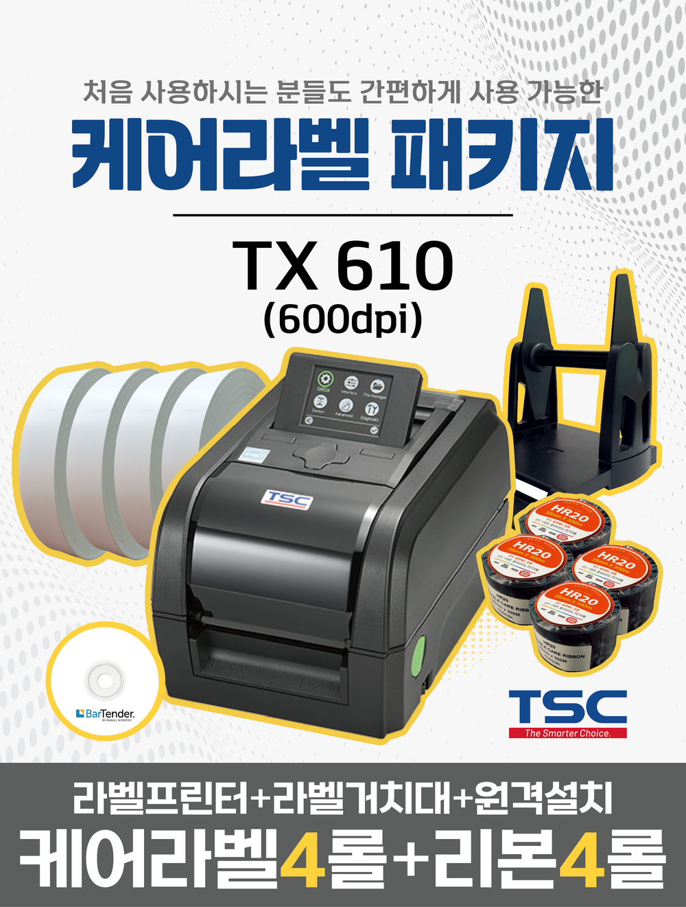 케어라벨패키지 TX 610 600dpi 라벨거치대+케어원단+케어리본+무료원격설치
