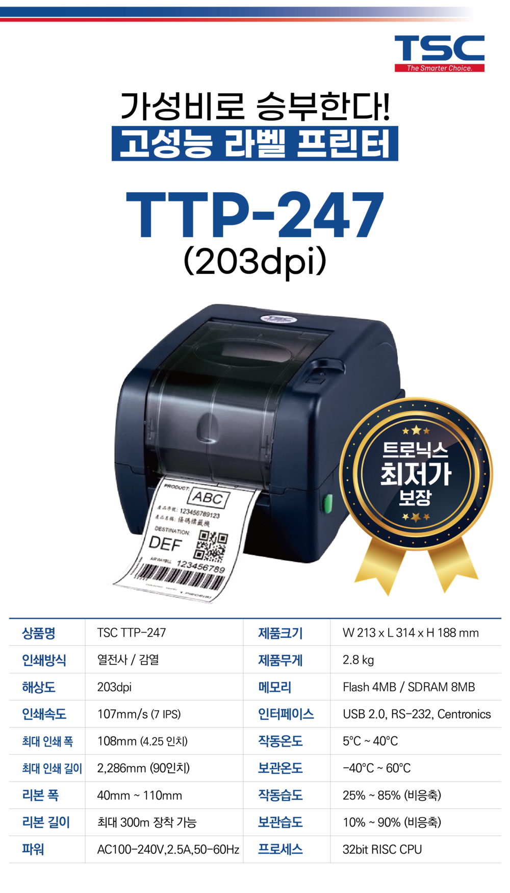 농산물스티커패키지 TTP247 203dpi 감열지롤라벨+무료원격설치