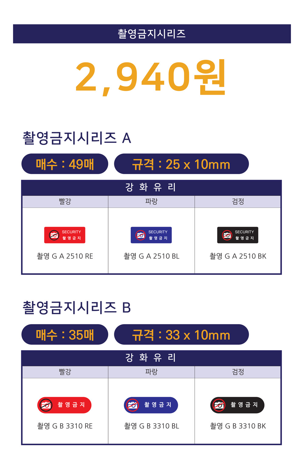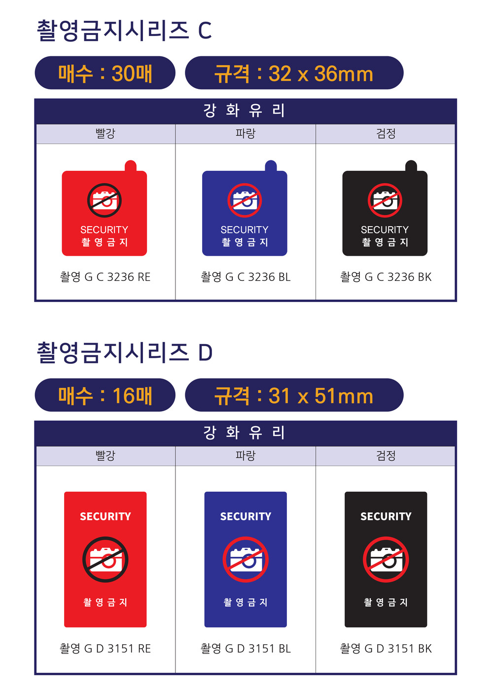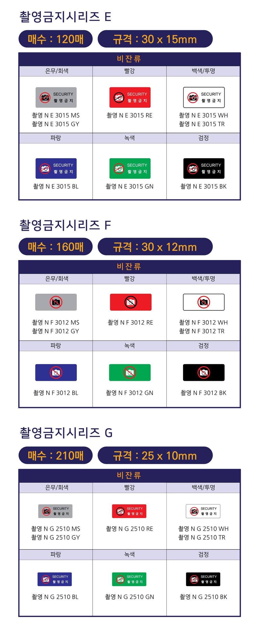 촬영금지 보안 스티커 7가지 스타일 8가지 색상 총 36종