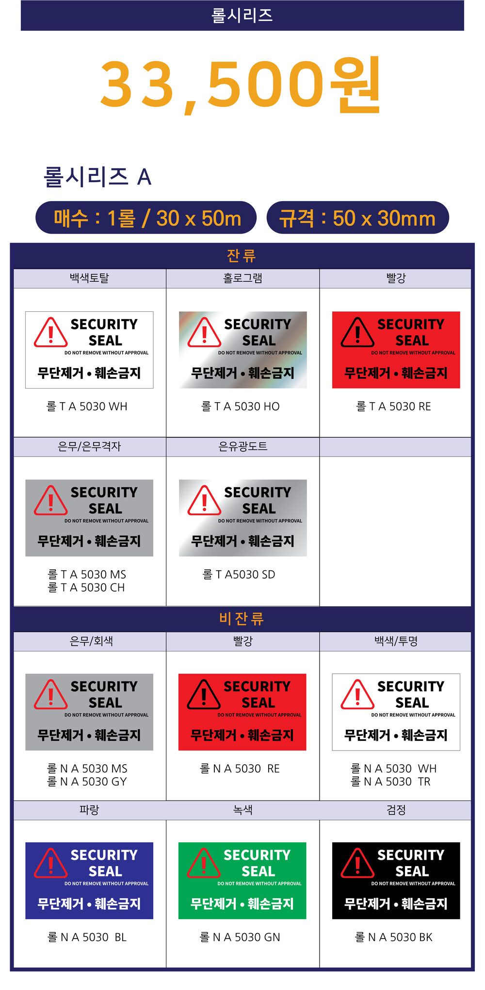 50*30mm 이미지가 50M 길이로 반복되어 있는 롤타입입니다.