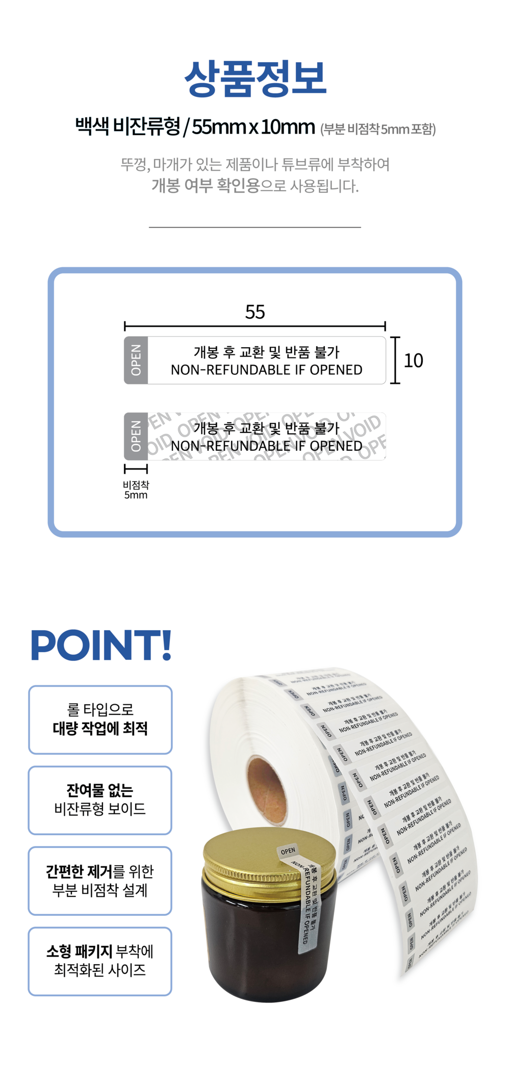 OPEN 비점착 보이드VOID 백색비잔류 스티커 100매