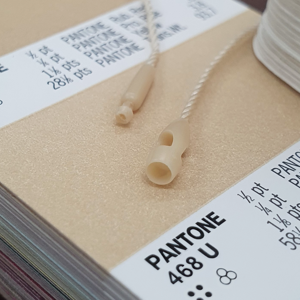 폴리에스터 끈과 PP(폴리에스필렌)소재의 일자형 머리 부분으로 이루어져 있어,