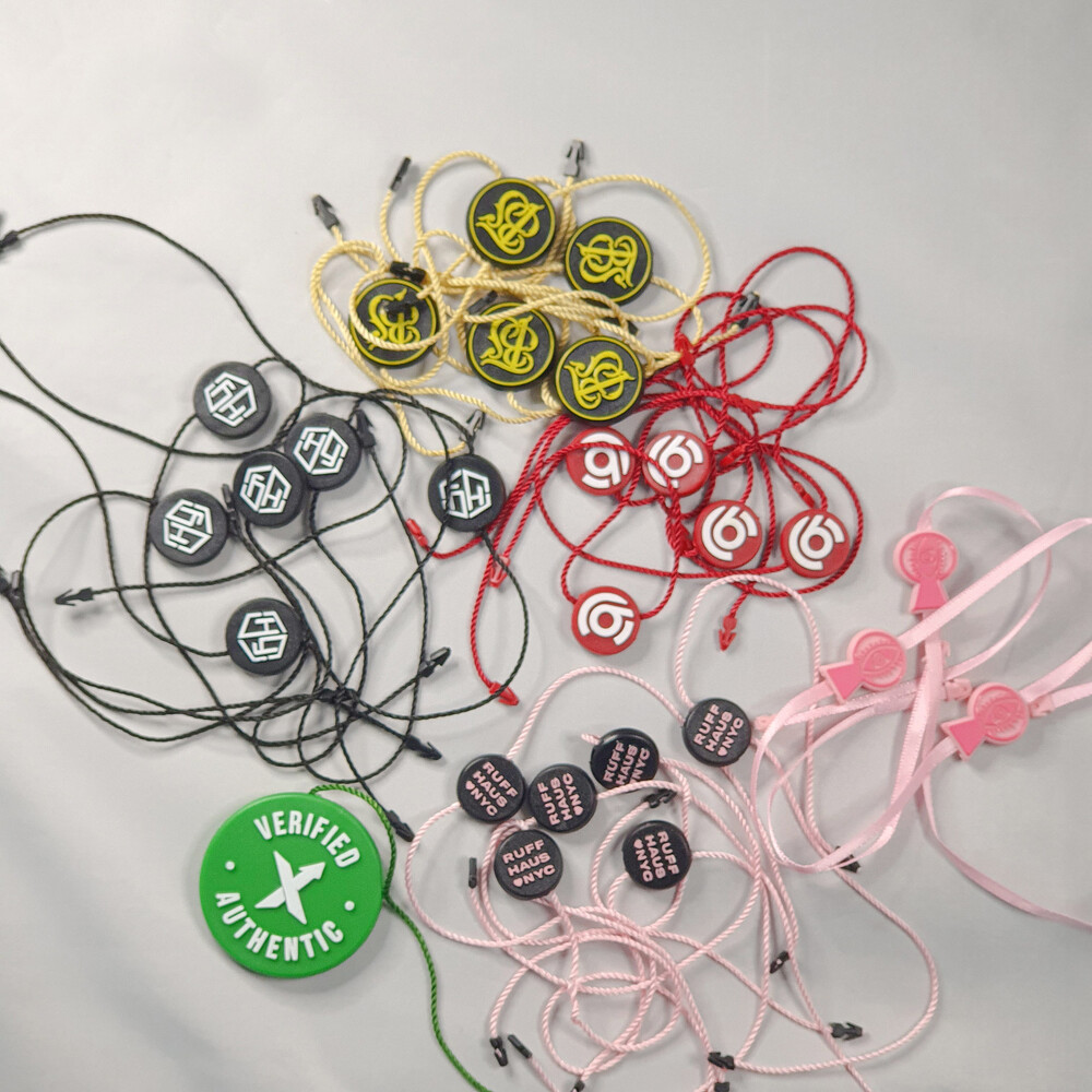택을 옷에 달 수 있도록 제작되었으며, 목 뒤의 직조라벨/가격택 등에 달아서 사용합니다.