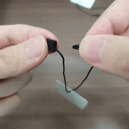 끈이 얇지만 튼튼하여 잡아당겨도 잘 끊어지지 않습니다.