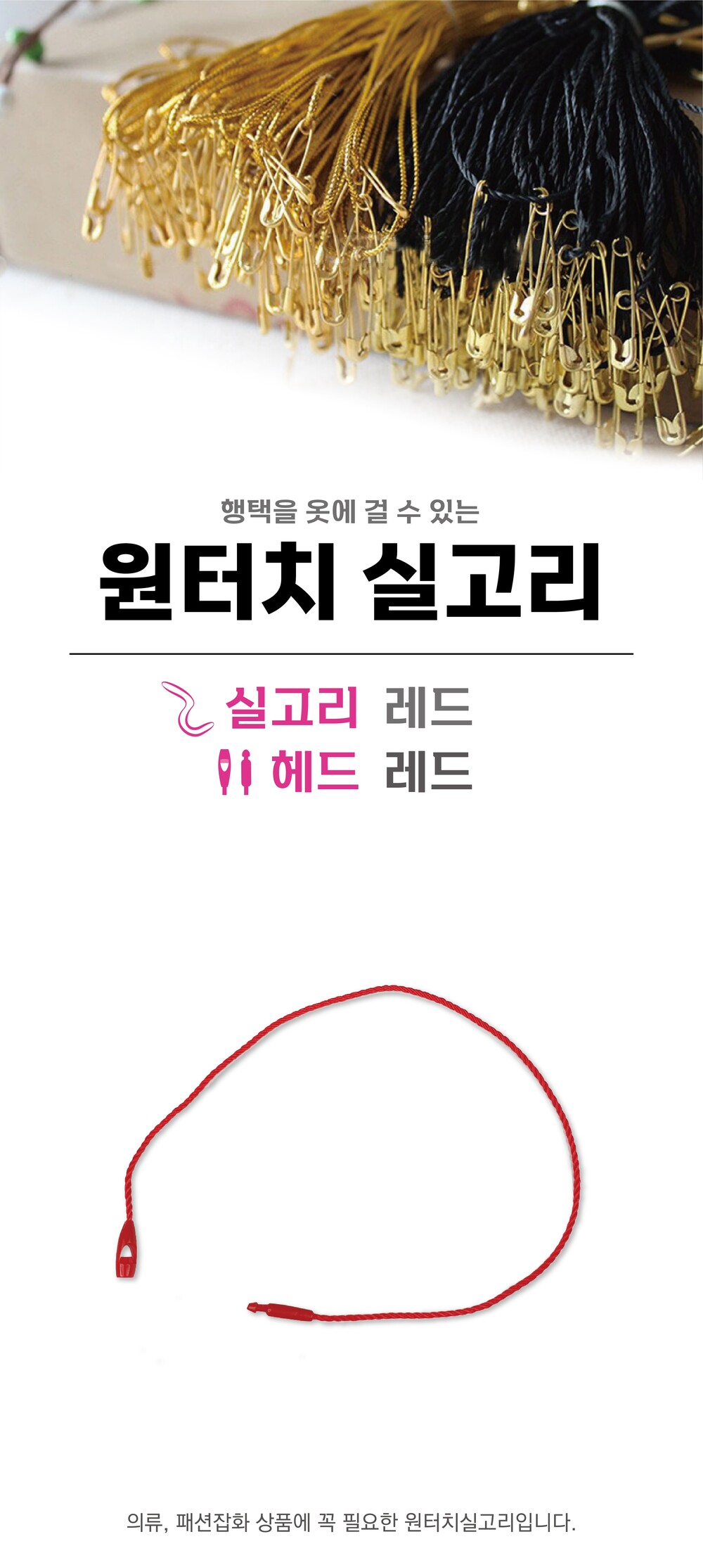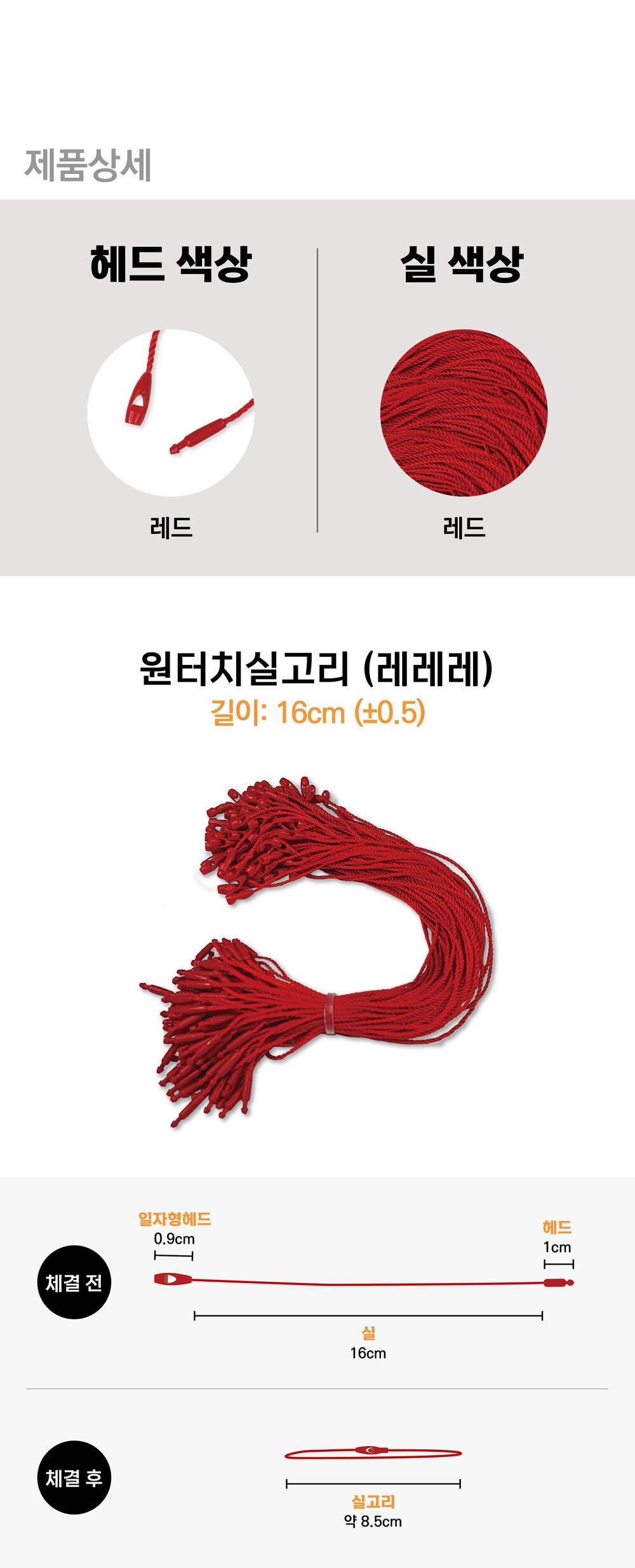 원터치실고리 일자형(빨강) / 5백개 / 16cm