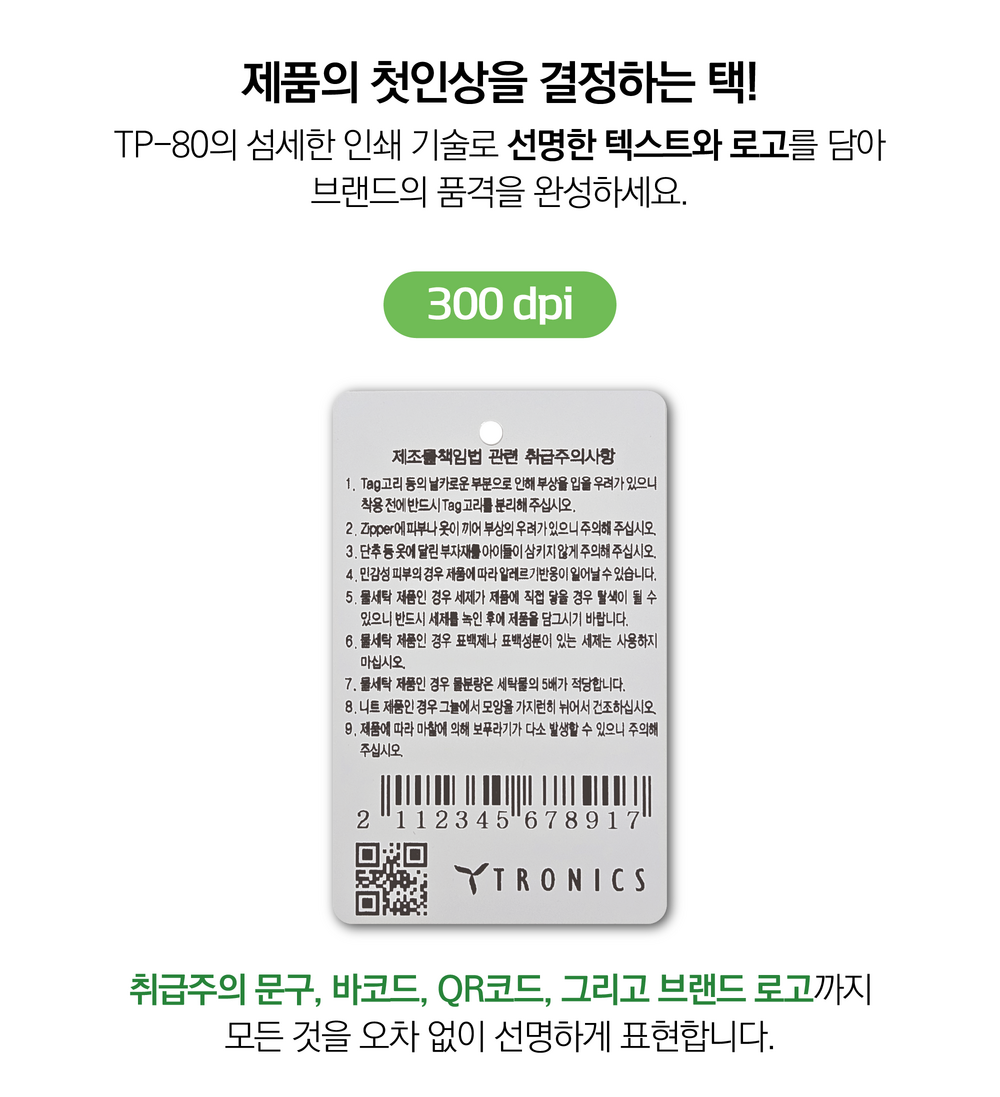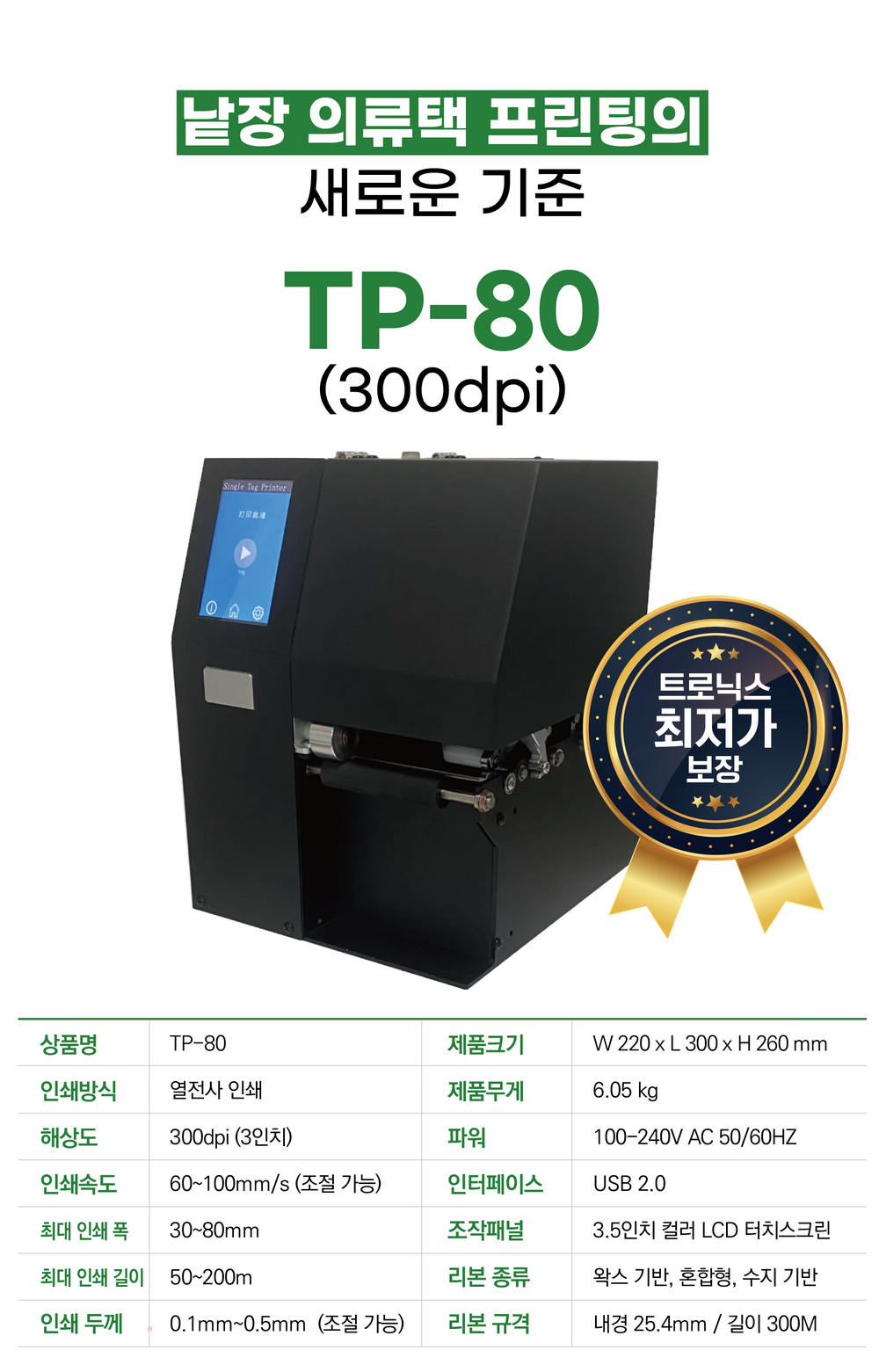 TP-80 300dpi 낱장 의류택 열전사 바코드 프린터