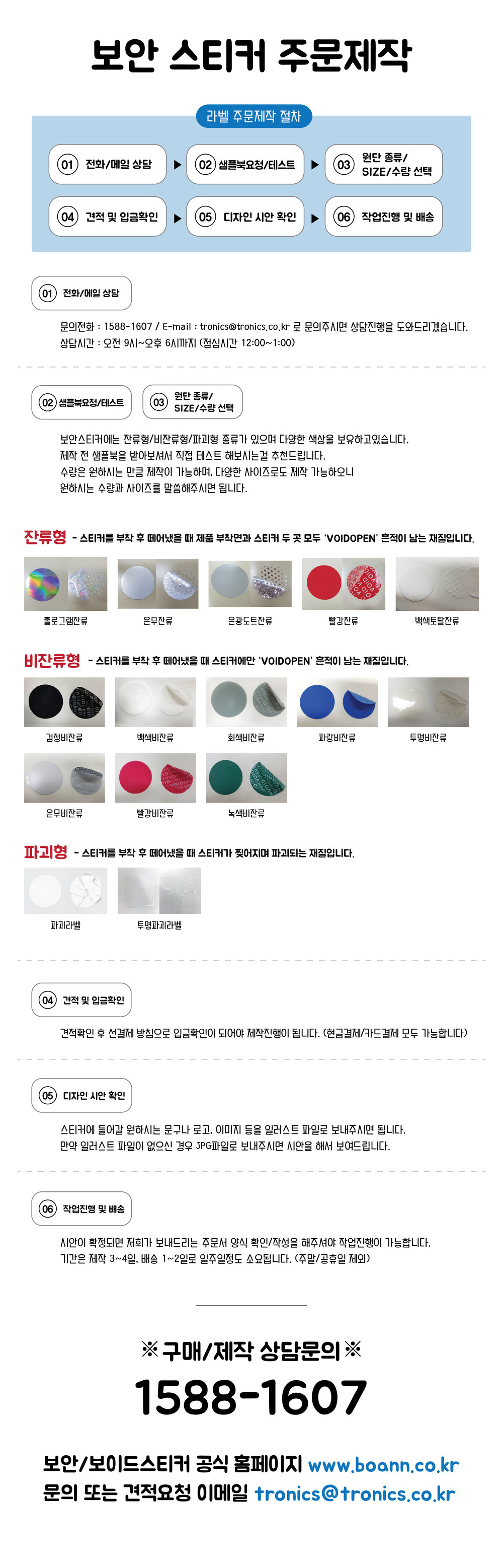 단, 보이드/파괴스티커는 제품 특성상 교환 및 반품이 불가하니 참고해주세요.
