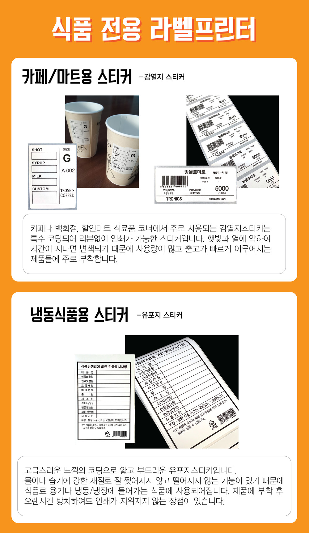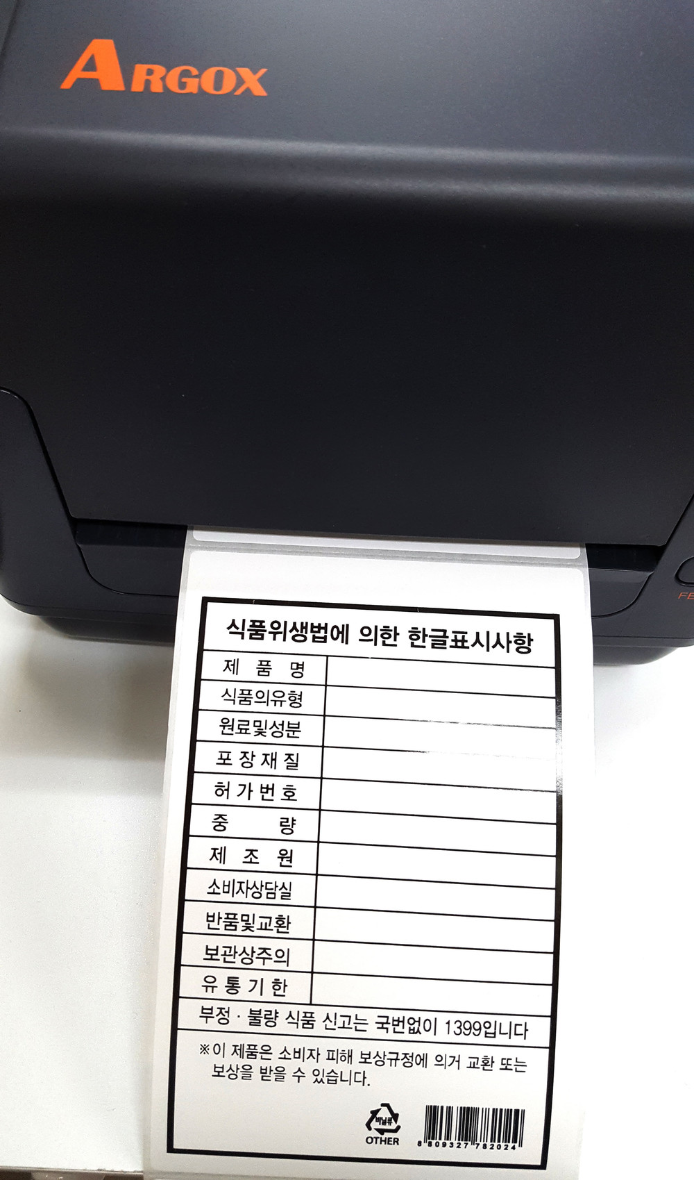 [식품전용라벨프린터]바코드프린터+외장거치대+케어원단+케어리본+무료배송/무료원격설치