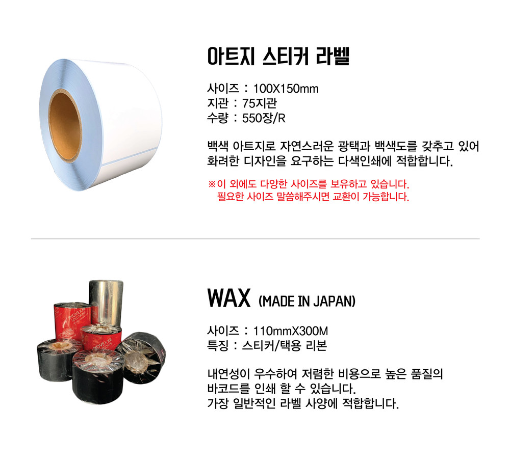 ※다른 종류/사이즈의 라벨을 희망하시는 경우 당사로 전화주시기 바랍니다. (1588-1607)