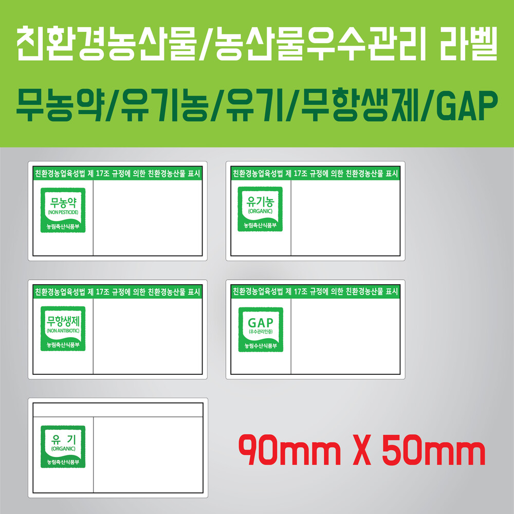무농약 스티커 / 유기농 스티커 / 무항생제 스티커 / GAP 스티커 / 유기 스티커