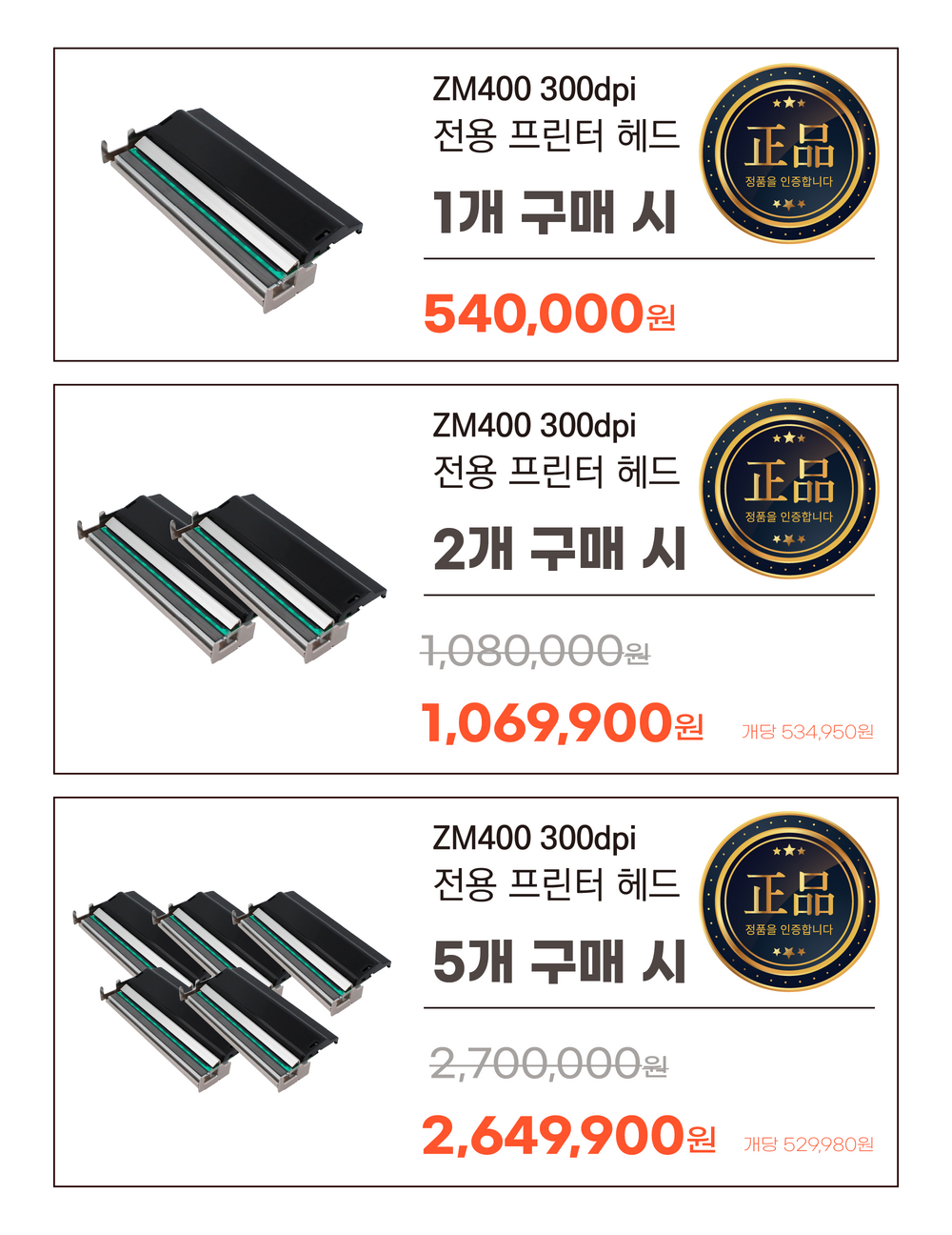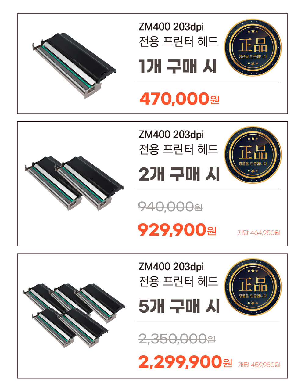 [정품][ZEBRA] 지브라 프린터 전용 헤드(프린터헤드) / 모델 ZM400