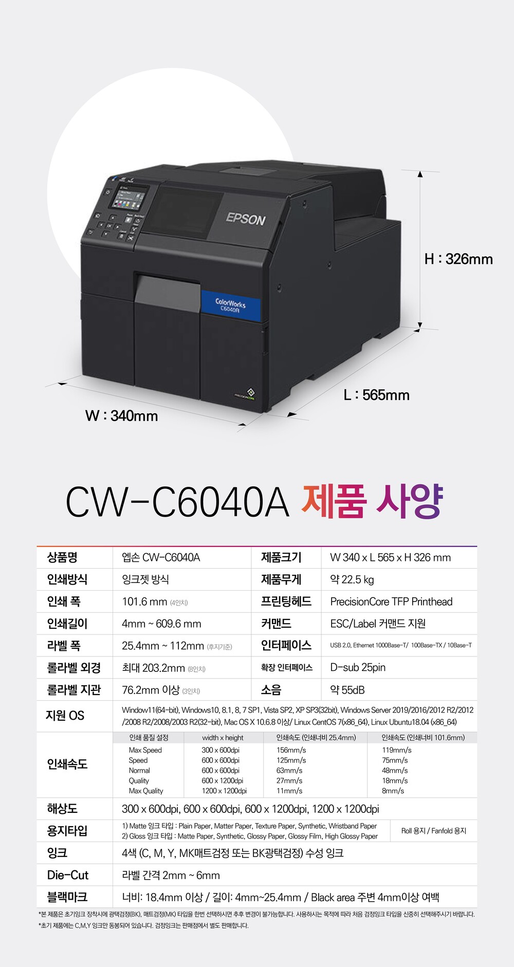 엡손 CW-C6040A (1200dpi) 잉크젯 컬러라벨 프린터 인쇄폭 4인치