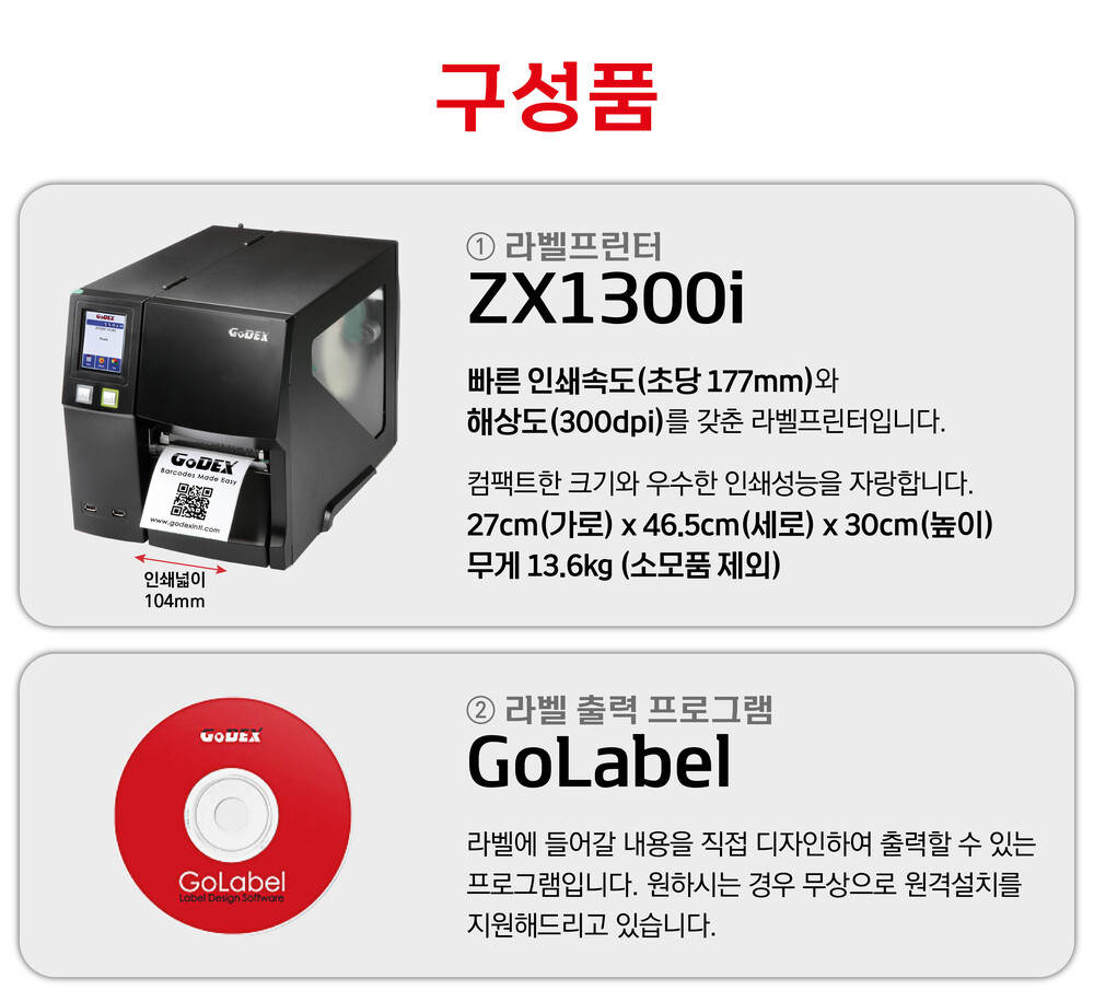 GODEX 고덱스 ZX1300i (300dpi) 라벨 바코드 프린터 무료배송/무료원격설치
