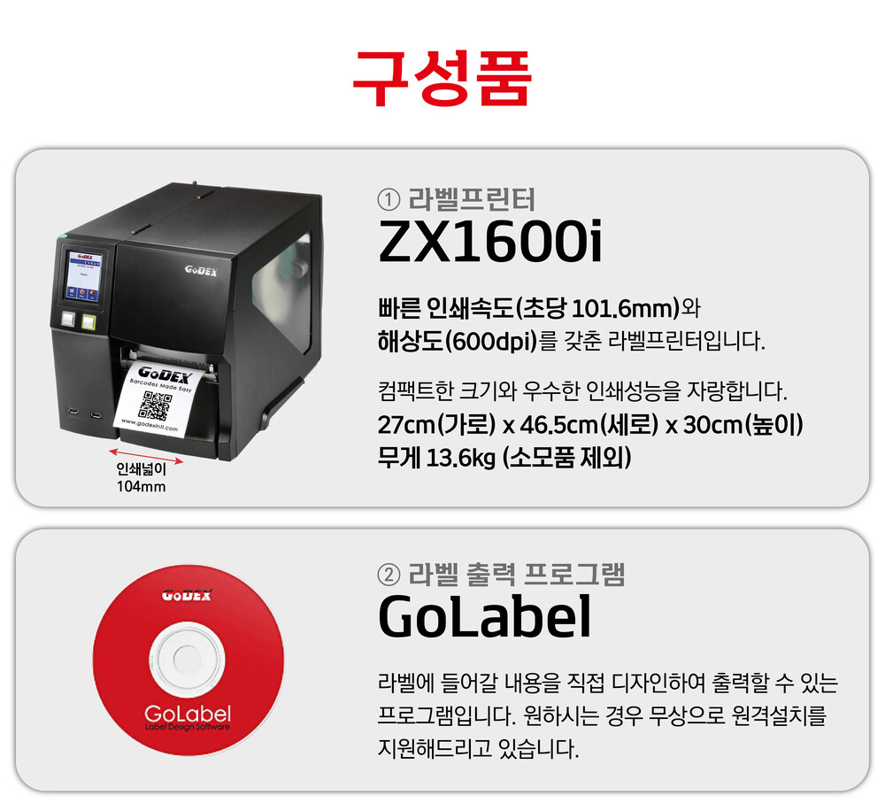 GODEX 고덱스 ZX1600i (600dpi) 라벨 바코드 프린터 무료배송/무료원격설치