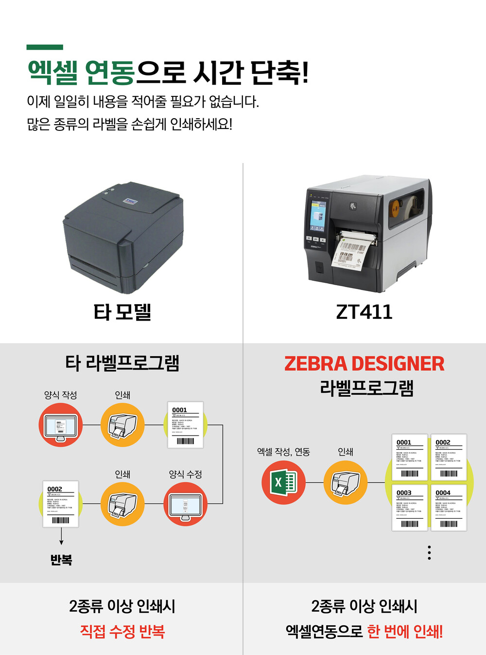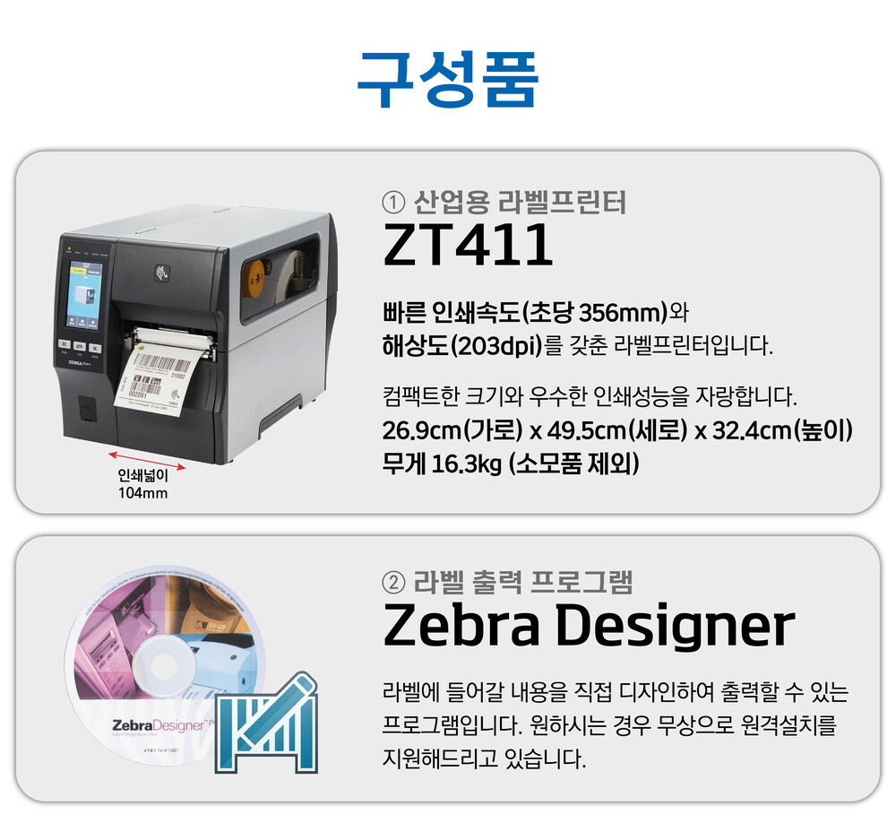 ZEBRA 지브라 ZT411 (203dpi) 라벨 바코드 프린터 무료배송/무료원격설치